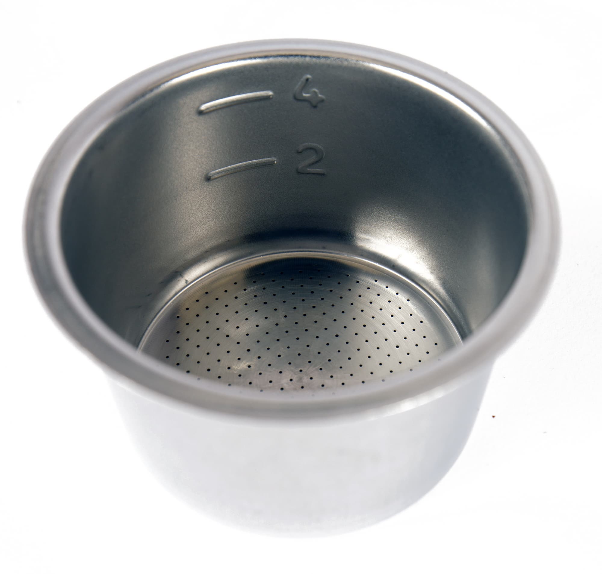 У фильтра с внутренним диаметром равным 50 мм есть отметки, соответствующие 2 либо 4 чашкам кофе. Дно фильтра имеет множество отверстий, через которые готовый напиток будет поступать в чашку либо кувшин.