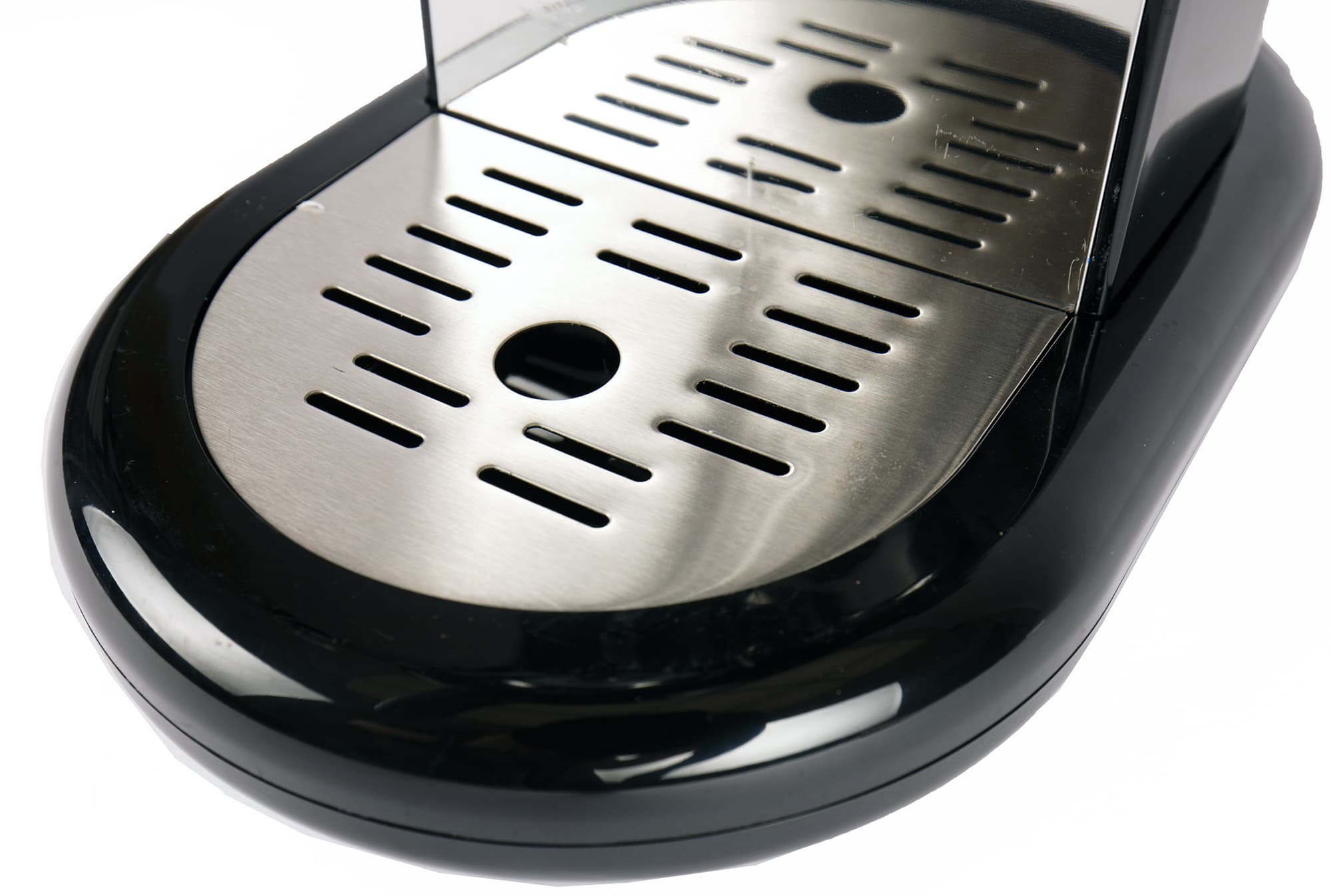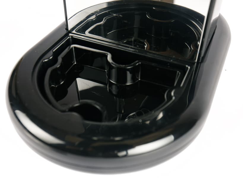 Под металлической пластиной прячется пластиковый поддон для сбора капель. Какой-либо индикации заполнения (переполнения) поддона у кофеварки не предусмотрено.