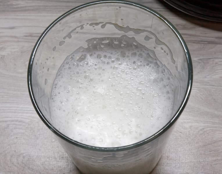 Для взбивания молочной пены мы взяли 100 мл холодного молока. Устойчивая пена появилась уже через 45 секунд после начала приготовления, еще около 15 секунд ушло на прогрев молока. Чуть больше, чем через минуту температура молока составила уже 70 °C.