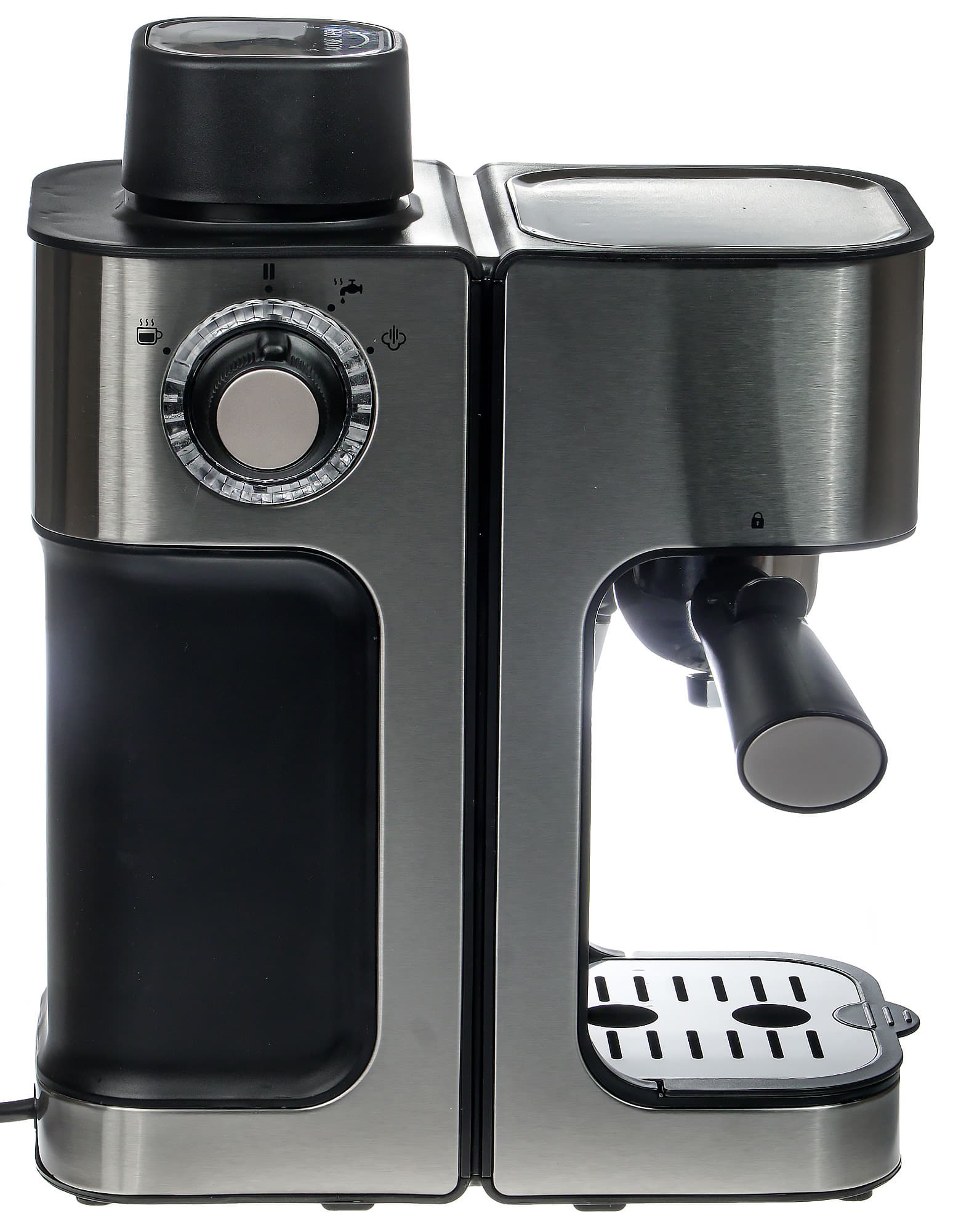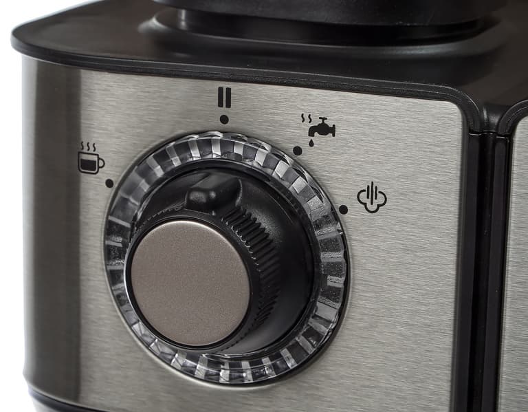 Единственный орган управления кофеваркой — механическая ручка, расположенная на левой грани корпуса и отвечающая за переключение режимов.