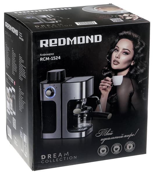 В самом деле: данный прибор не является ни рожковой, ни капельной кофеваркой в классическом понимании этих терминов. Давайте взглянем на Redmond RCM-1524 и проверим ее в деле.