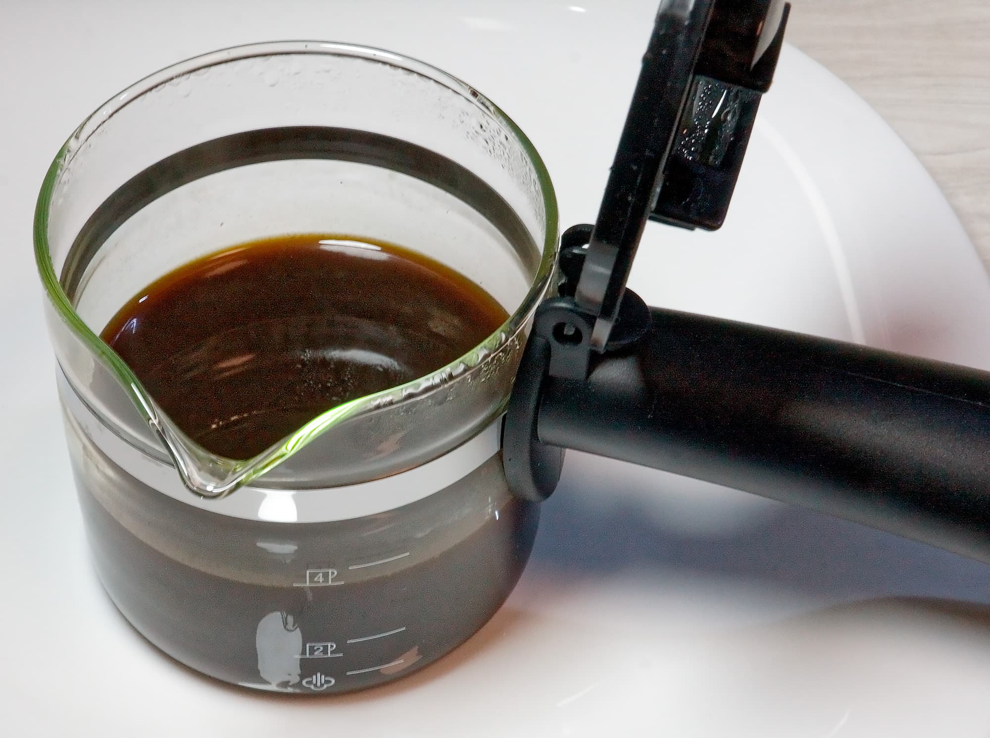 Кофе начал поступать в кувшин уже через 45 секунд, общее время приготовления составило примерно 1 минуту 30 секунд. Температура напитка в кувшине составила 70 °C.