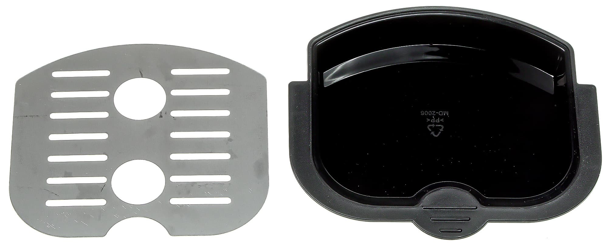 Капли попадают в съемный пластиковый поддон, оснащенный ручкой для захвата и металлической подставкой (которая, как мы знаем, очень быстро поцарапается — так случается всегда).