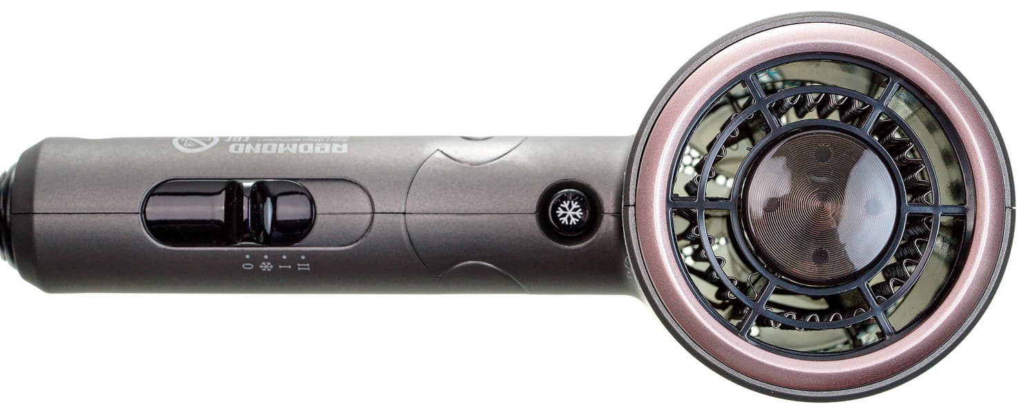 Визуальный осмотр компактного фена Redmond RF-534 оставил лишь один вопрос: как конструкция прибора, в частности большой диаметр выходного сопла, повлияет на скорость воздушного потока? Во всем остальном прибор достаточно стандартен. Никаких недостатков в качестве изготовления или сборки не обнаружено.