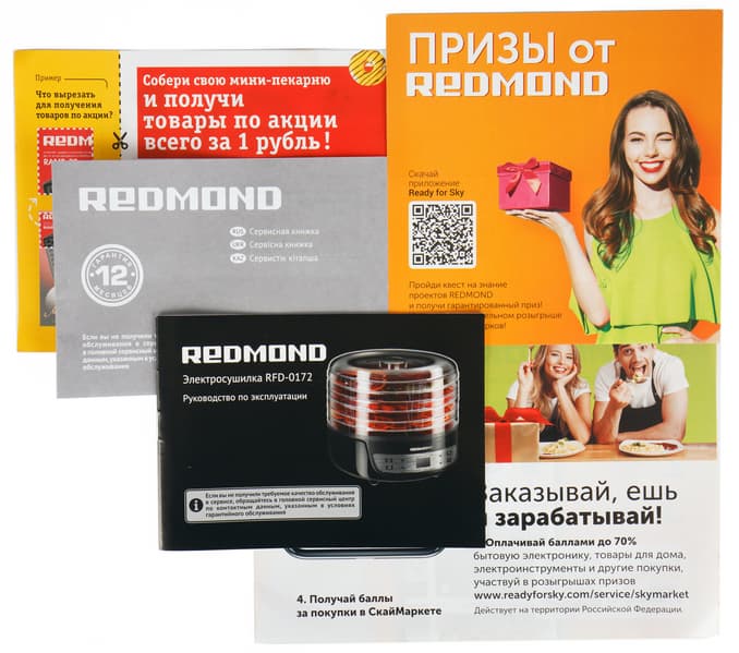 - комплект документации (инструкцию, гарантийный талон, акционные предложения Redmond)