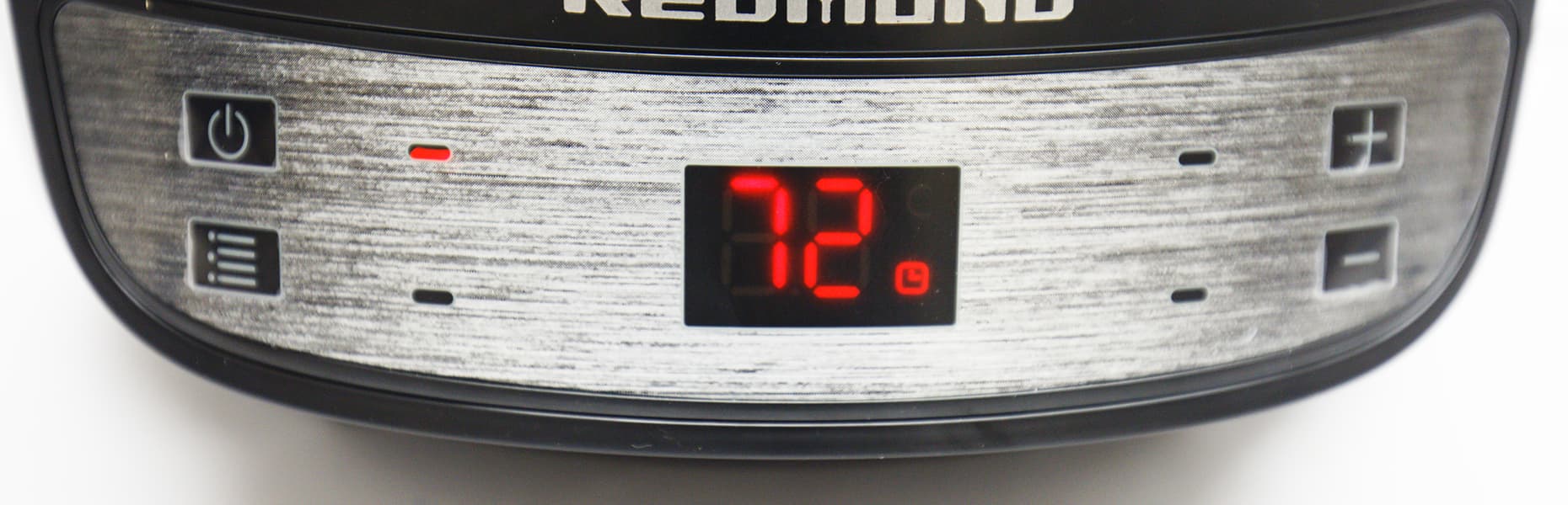 После включения прибора в электросеть и нажатия кнопки включения, мы сразу видим на дисплее температуру 30 °C и с помощью кнопок «+» и «−» можем настроить необходимую температуру до 70 °C с шагом в 5 °C.