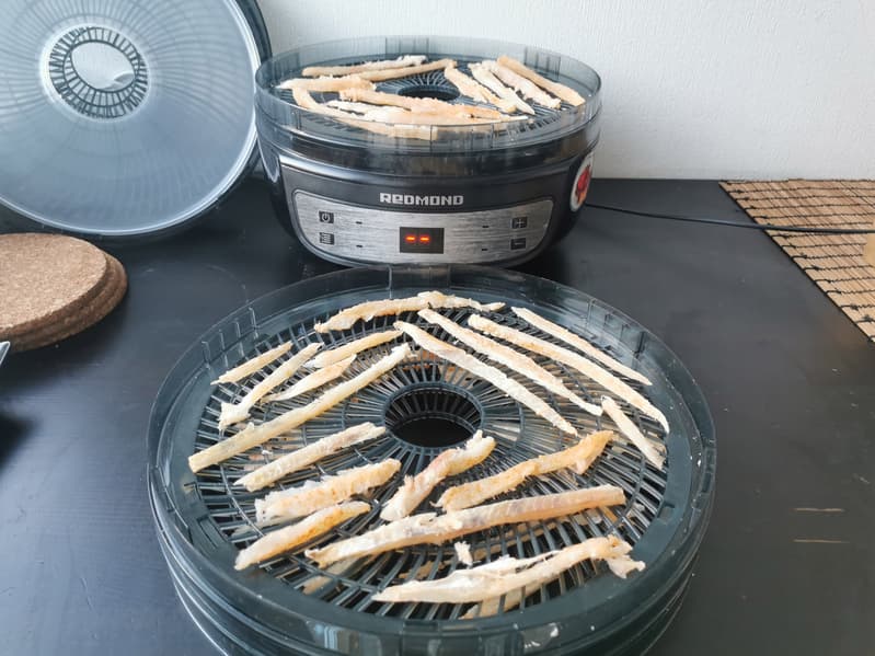 Однако уже через 3,5 часа при 70 градусах рыба была совершенно идеально подсушена.
