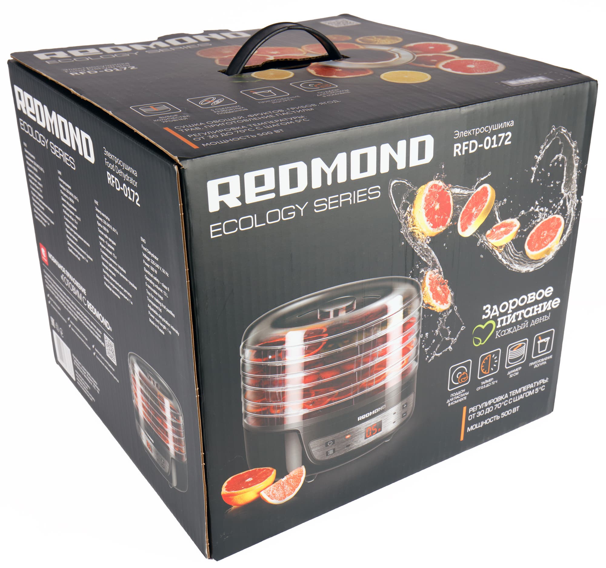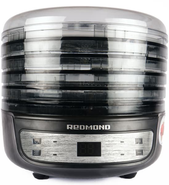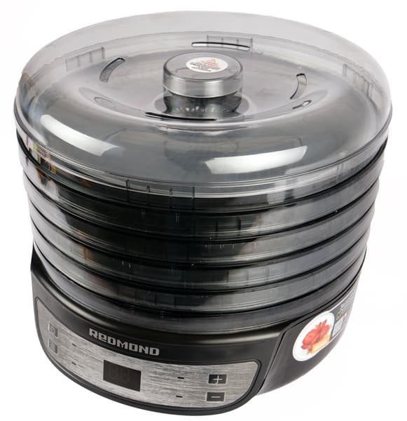 Сегодня мы рассмотрим и протестируем конвекционный дегидратор (сушилку для овощей и фруктов) RFD-0172 компании Redmond. Данный тип приборов для нас совсем не нов, и мы не ждем от них чудес (особенно с учетом того, что конструкция нашей сушилки весьма стандартна) Однако отметим, что эта модель, по заявлению производителя, также может быть использована в качестве йогуртницы (баночки для этого, правда, придется докупать отдельно). Поэтому главная задача для нас — проверить, насколько хорошо электросушилка справляется именно с сушкой разных продуктов и удобна ли она в эксплуатации.