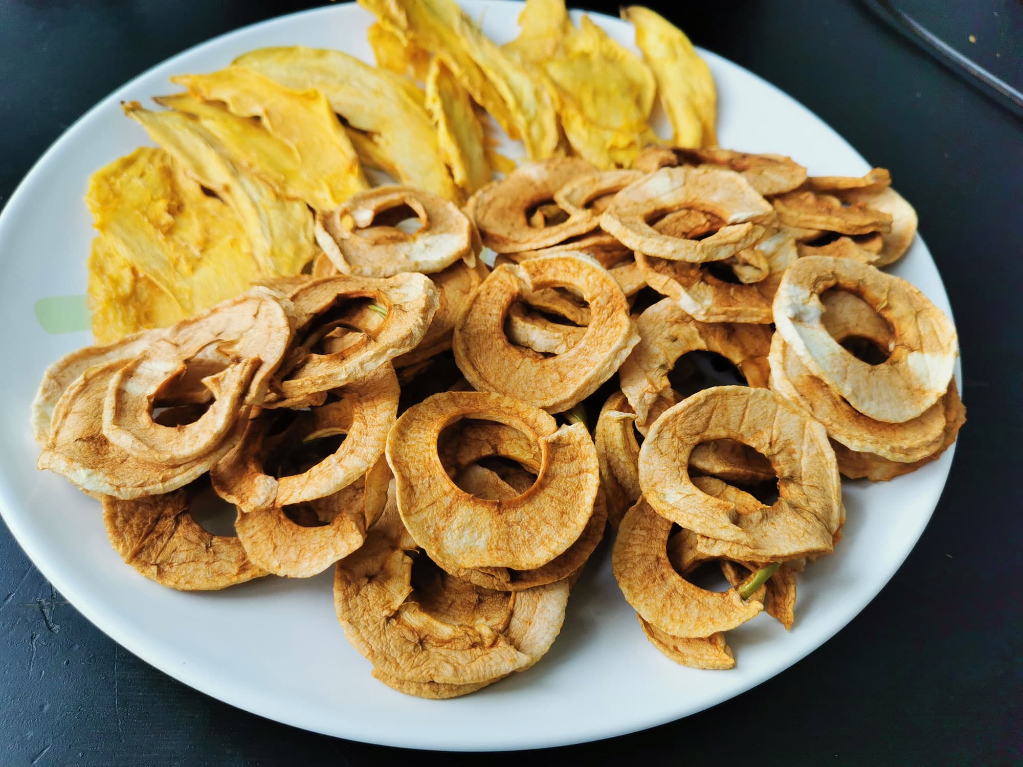 Фотография сушеного манго представлена выше, на блюде с яблоками.