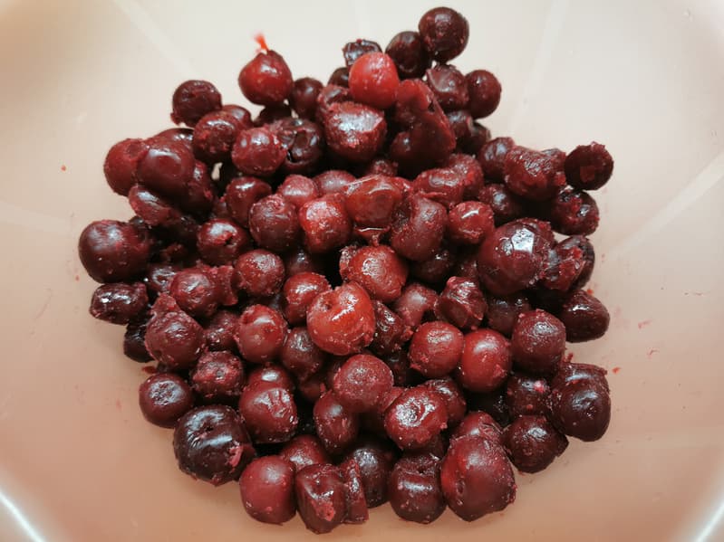 Заранее достали из морозилки 500 г вишни без косточек и оставили размораживаться.