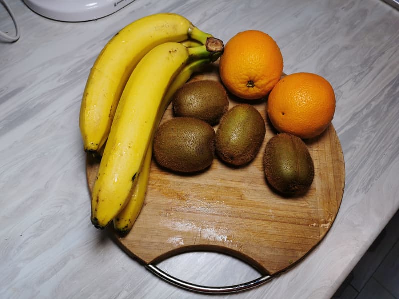 А также мы подготовили несколько бананов, киви и апельсинов. Нам хватило по 1 фрукту на 6 порций Минари. Апельсины можно было заменить на клубнику, но мы не обнаружили в магазинах приличных ягод.