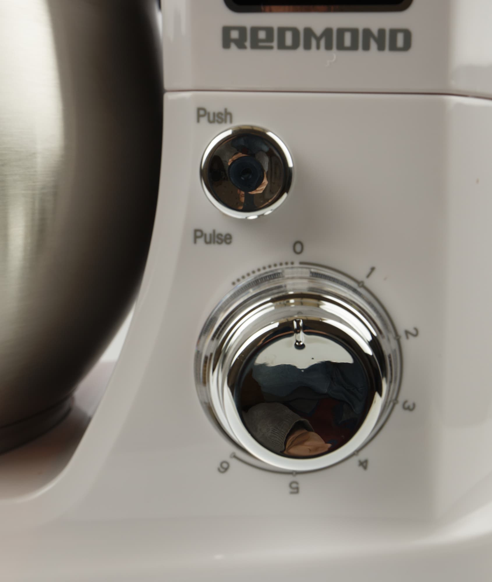 Миксер Redmond RFM-5371 может работать в шести обычных скоростных режимах и импульсном режиме, запускающем вращение сразу на максимальной скорости.