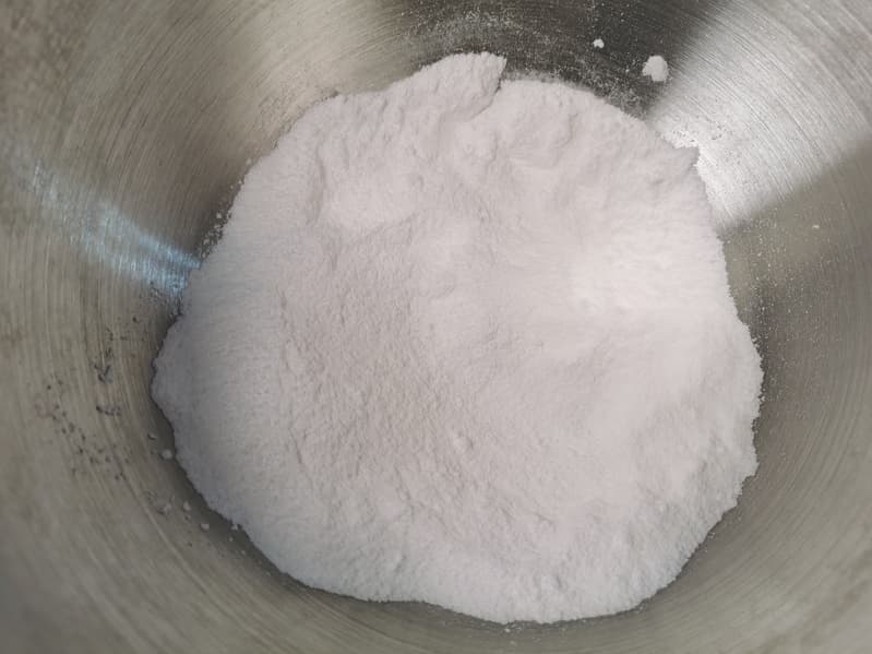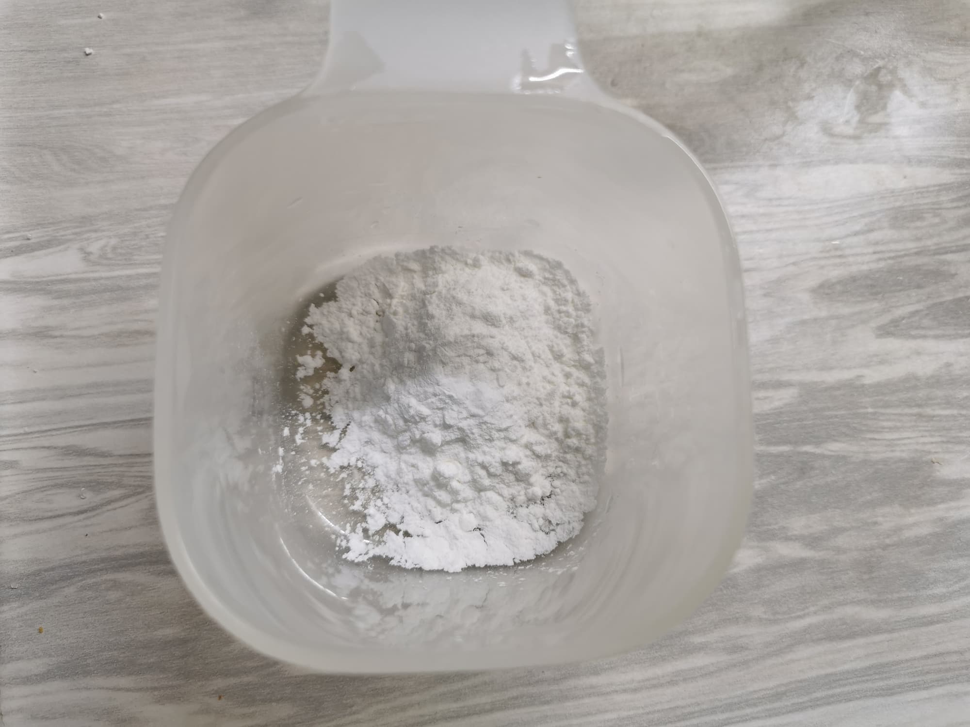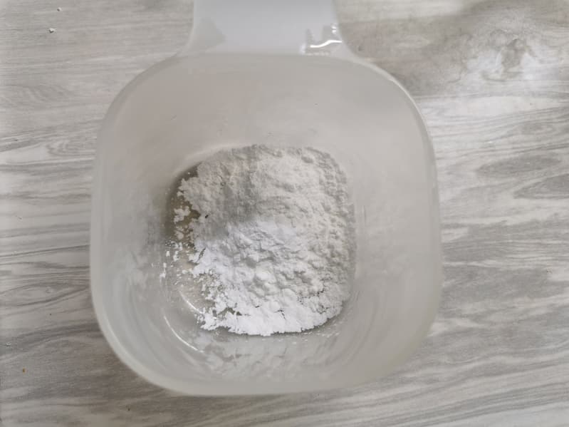 В дежу мы насыпали 200 г сахарной пудры, которую самостоятельно смололи в кофемолке из обычного рафинированного сахара.