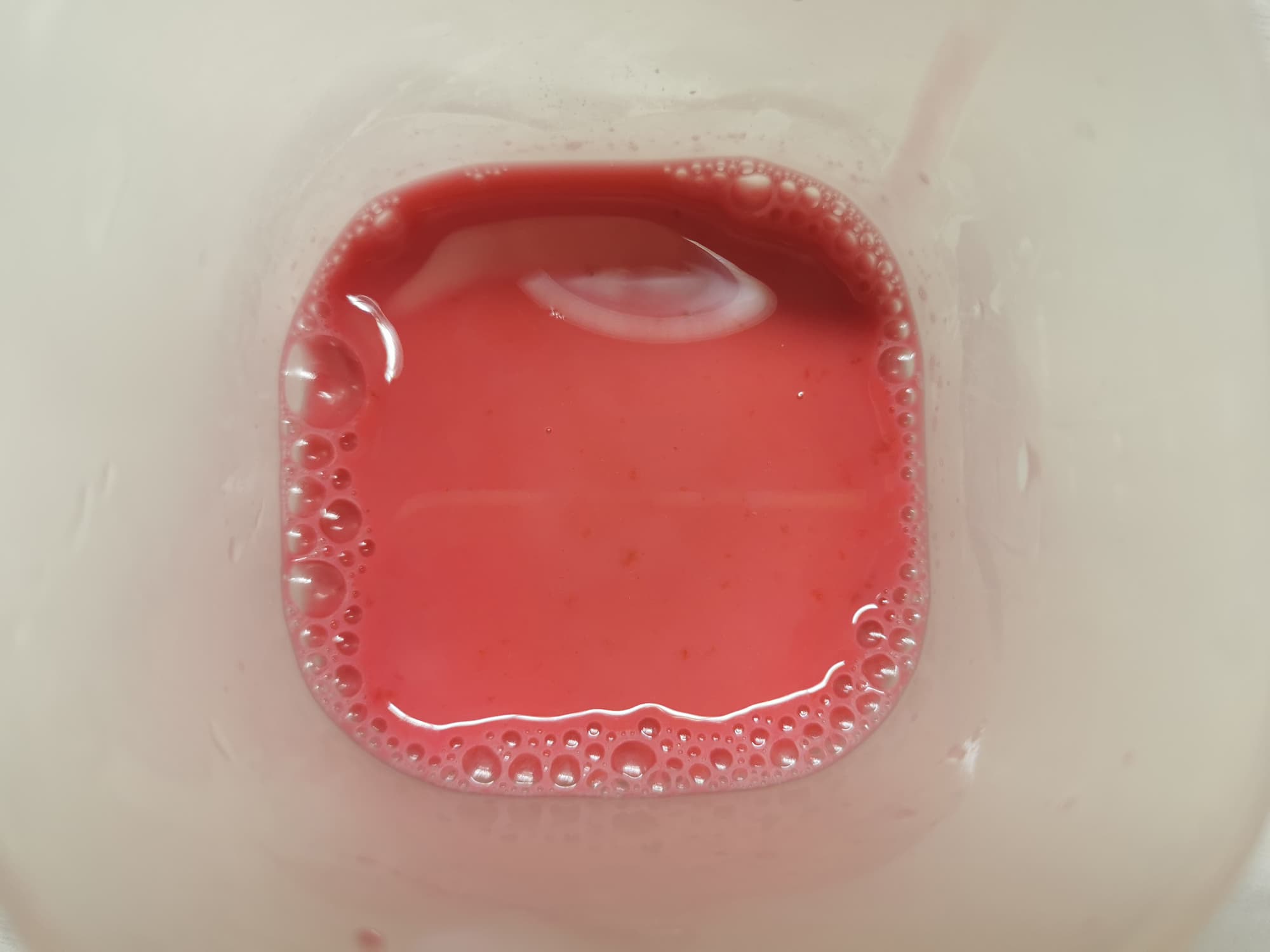Спустя 2 минуты на шестом режиме мы увидели первую симпатичную белоснежную пену, но она была еще достаточно жидкой, поэтому мы продолжили процесс взбивания.