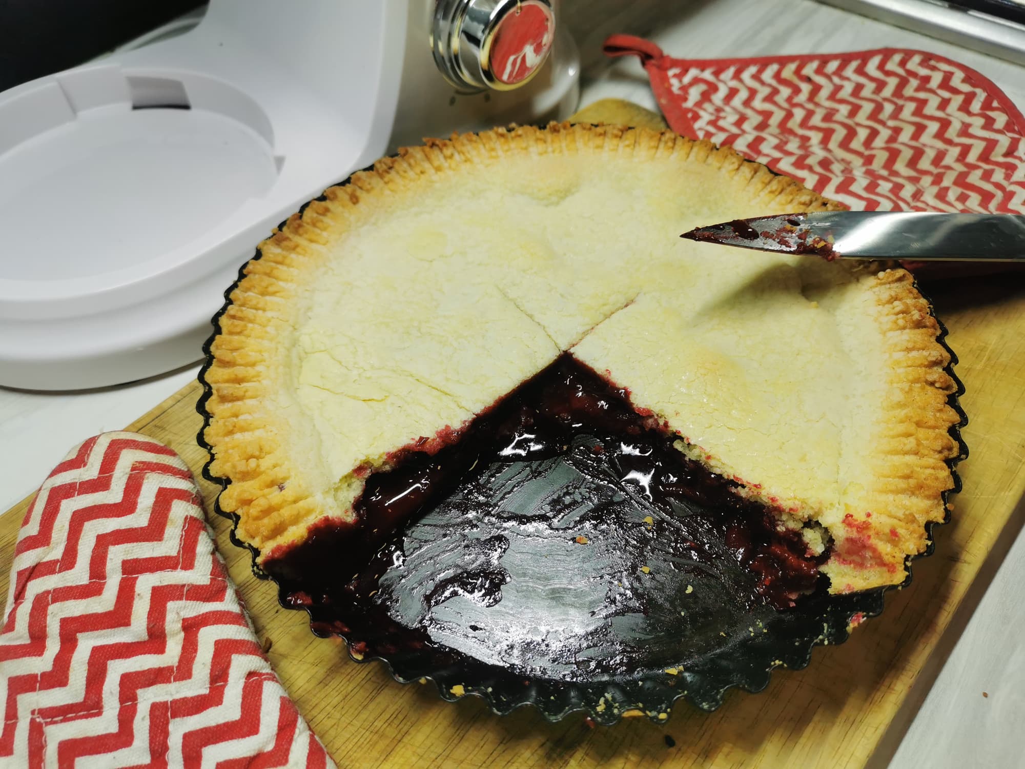 Спустя нужное количество времени мы достали форму и сразу же почувствовали дивный запах песочного теста и вишни.