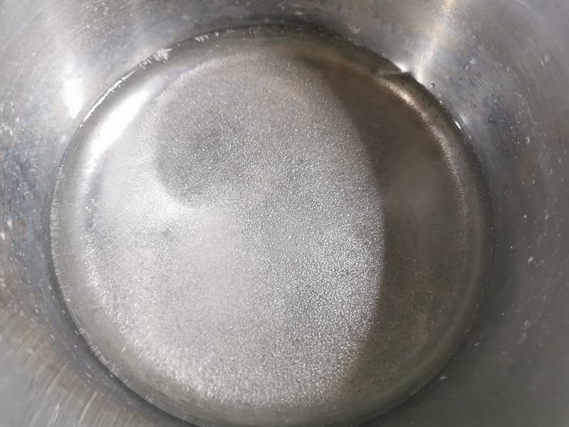 Когда вишня уже немного подтаяла, мы начали кипятить 100 мл воды с 50 г сахара на среднем огне.