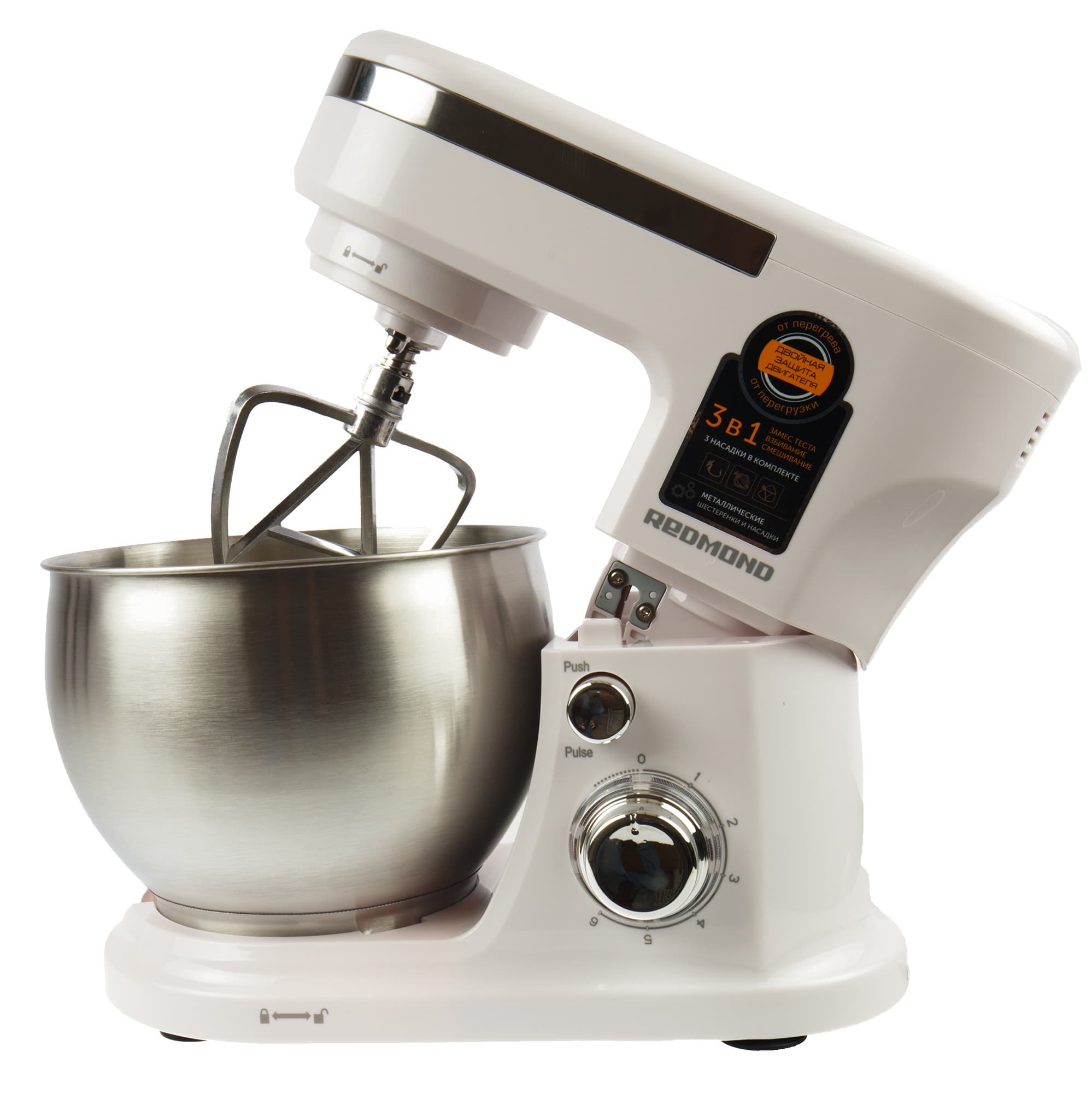 Redmond RFM-5371 — отличный вариант для любителей домашней выпечки без лишних хлопот, вроде ручного вымешивания теста. Тестомес имеет механизм плавного пуска, который сбережет двигатель от поломки при пиковых нагрузках и резком переключении скоростей/выключении. Брать его отдельно для взбивания яиц или сливок смысла, конечно же, нет — с этим справится и небольшой миксер, но в дополнение к основным задачам эти возможности будут не лишними.
