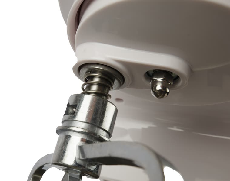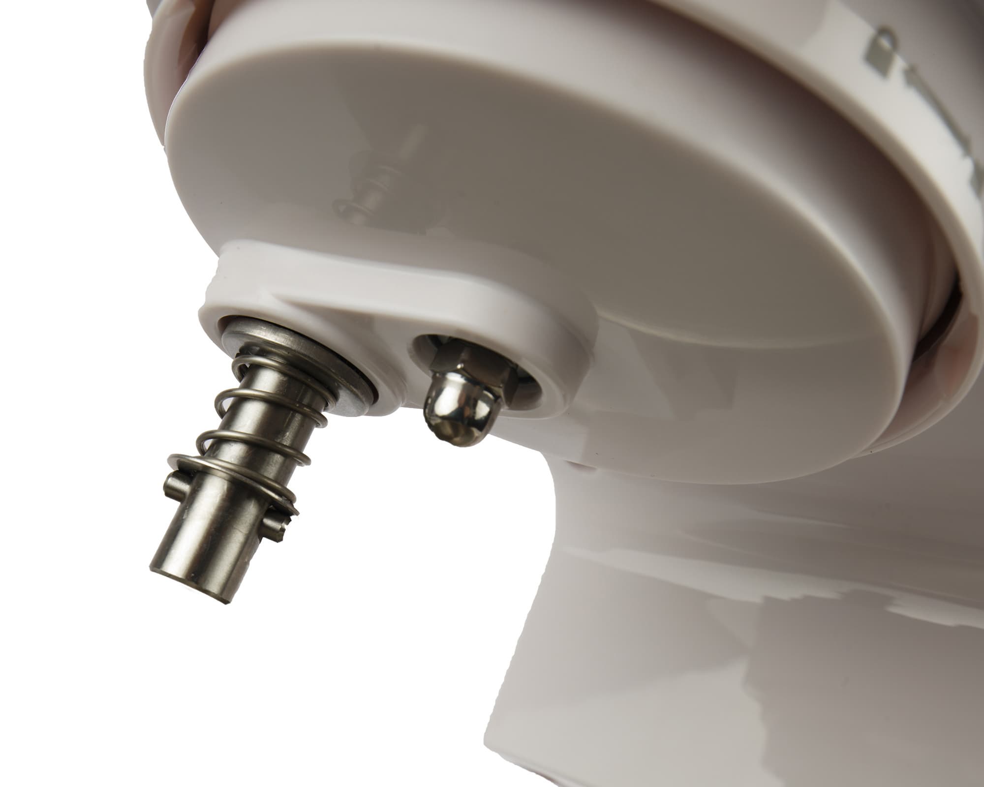 Шпиндель для крепления насадок представляет собой металлический вал с двумя выступами и пружиной снаружи. Насадки крепятся стандартным способом — надеваются на вал и поворачиваются до упора.
