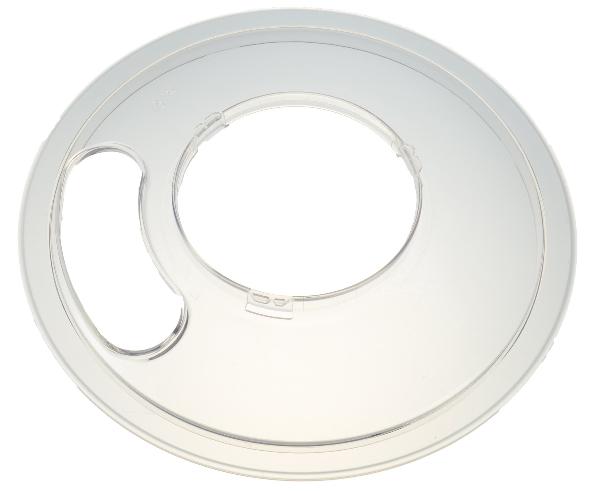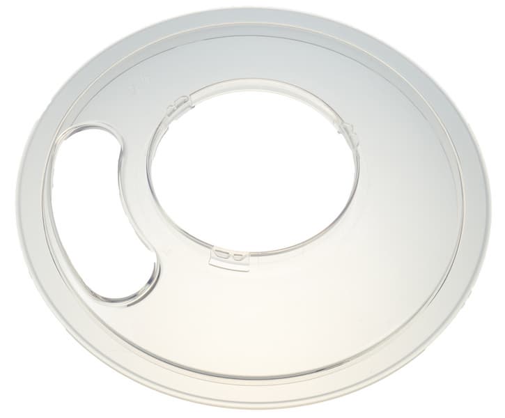 Для защиты от разбрызгивания при взбивании и смешивании ингредиентов производитель добавил пластиковую прозрачную крышку с отверстием для загрузки продуктов. Она крепится к откидной части блендера также посредством байонетного соединения.