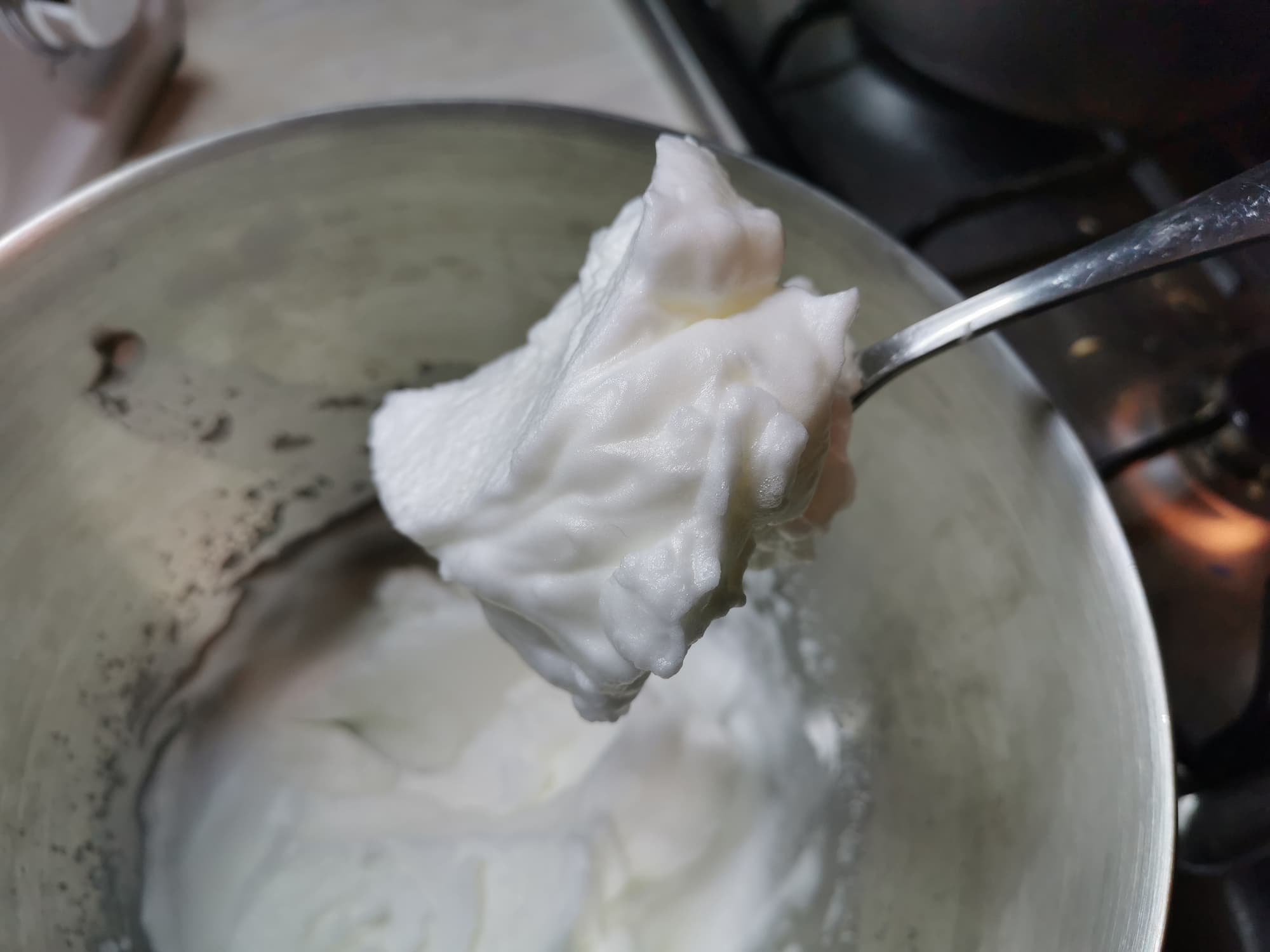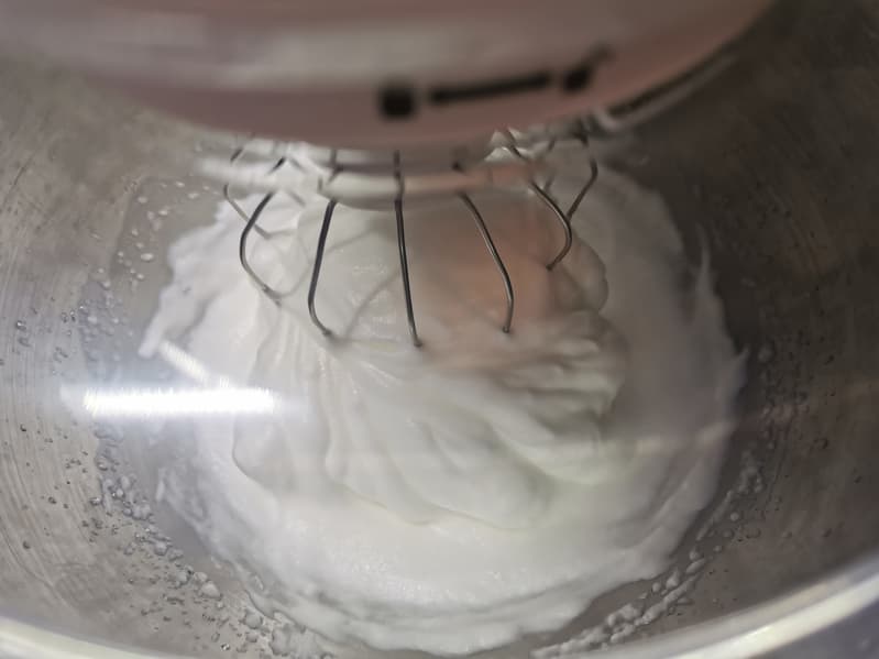 И вот спустя еще 3 минуты на шестом режиме появилась она — густая и воздушная, как пена для бритья, яичная масса.