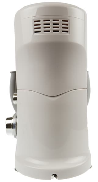 Корпус тестомеса изготовлен из глянцевого белого пластика, а в верхней откидывающейся части имеется металлическая вставка. Высота нашего устройства 29 см, диаметр чаши 21,5 см — габариты вполне стандартные и приемлемые для домашней кухни средних и больших размеров.