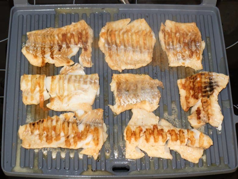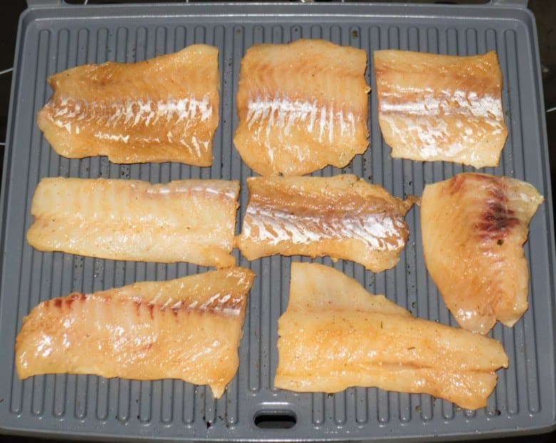 Жарили, как рекомендуют подсказки на корпусе гриля, на 4-м режиме. За 4 минуты рыба оказалась готова.