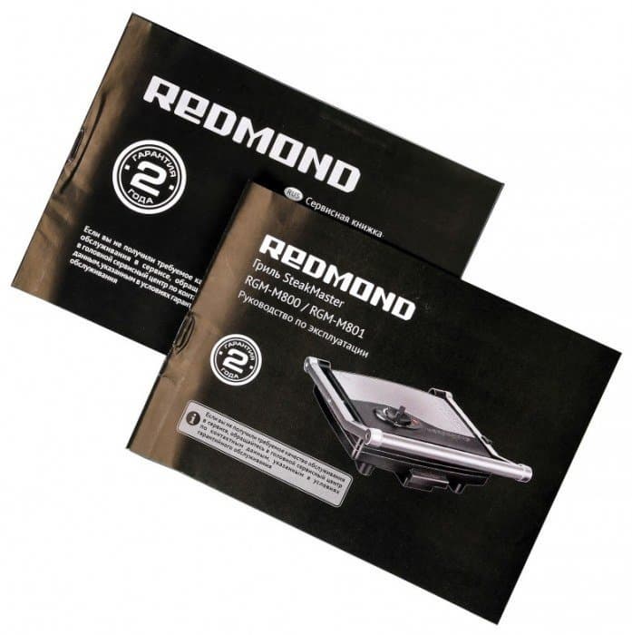 Оформление коробки полностью соответствует фирменному стилю Redmond. Внимательно изучив упаковку, можно ознакомиться с внешним видом гриля в целом и его отдельных конструктивных частей, техническими характеристиками, достоинствами прибора и несколькими вариантами блюд, которые можно приготовить с его помощью. Коробка оснащена ручкой для переноски, что, учитывая относительно небольшой вес гриля, можно признать удачным решением. Внутри коробки корпус гриля упакован в полиэтиленовый пакет. Размещается в коробке плотно, пенопластовые вставки обеспечивают безопасность и защиту от повреждений при транспортировке и хранении.