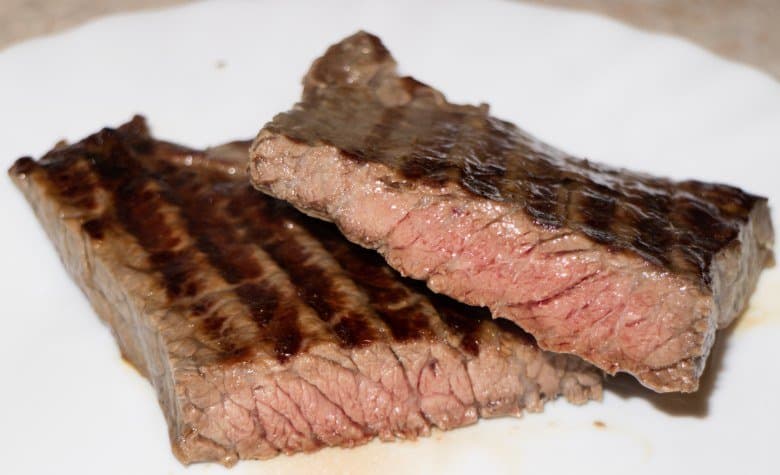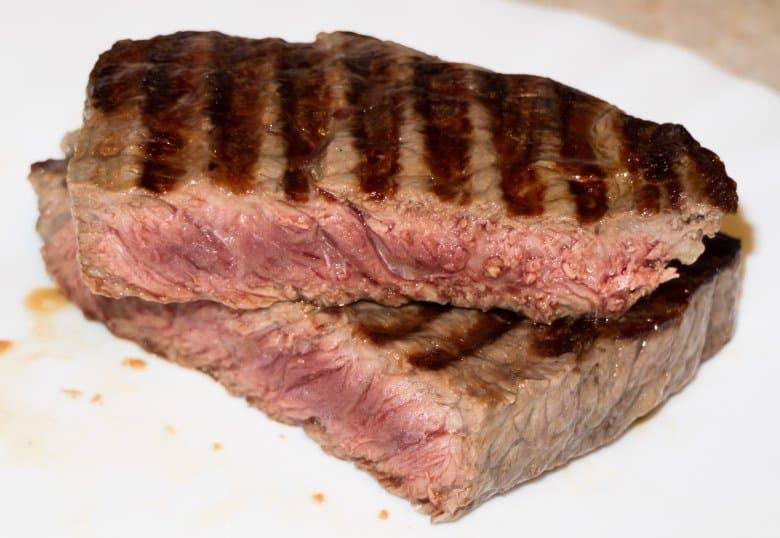 В этот раз мы получили желаемую степень прожарки: с кровью. Стейк прожарился снаружи, из центральной части выделялся прозрачный розовый сок.