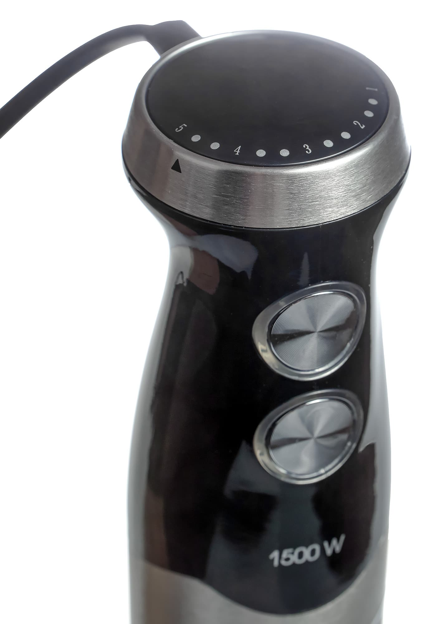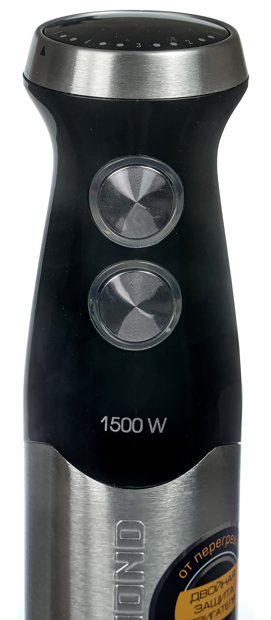 Блендер управляется двумя кнопками, расположенными сверху блока электродвигателя. Верхняя кнопка — включение основного режима, нижняя — включение «турбо»-режима. На самом верху расположено кольцо регулятора скорости. Вращая его, можно менять обороты от минимальных 10200 до 13500 об/мин, а в «турбо»-режиме скорость составляет 16500 об/мин.