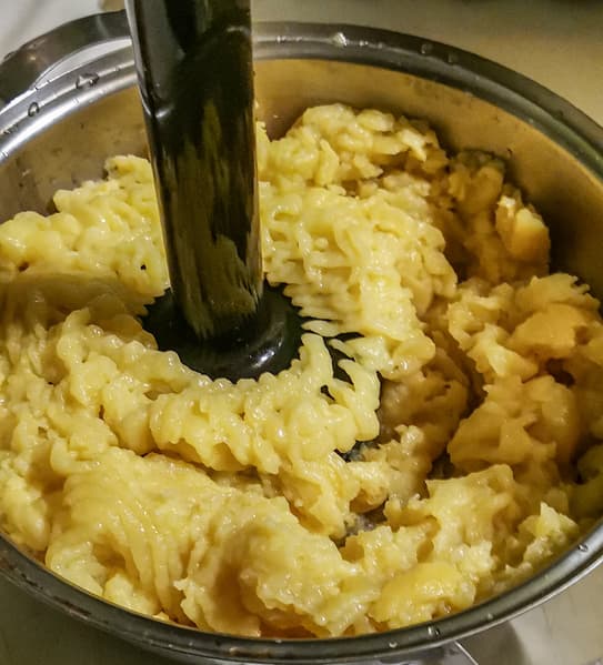 Для картофельной запеканки мы сварили картошку и насадкой для пюре измельчали ее в течение 1 минуты.