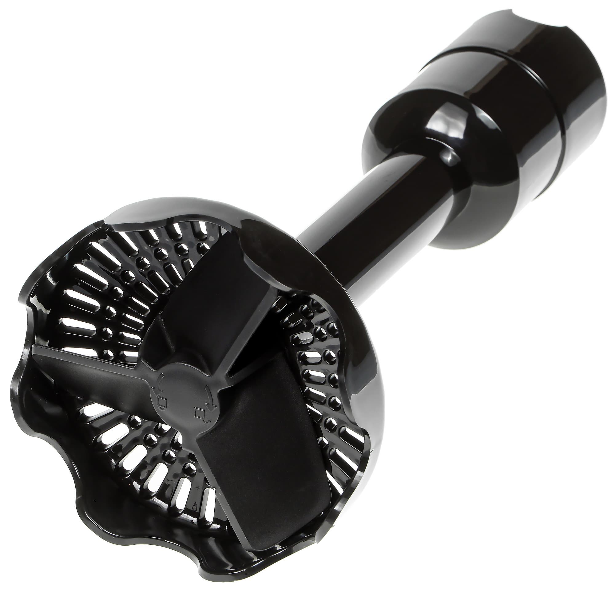 Пластиковая насадка-блендер для пюре прекрасно справляется с вареной картошкой. Пюре вылезает из насадки через отверстия в корпусе, не допуская образование воздушных карманов, которые обычно мешают измельчению в подобных конструкциях. Максимальное время работы насадкой для пюре — 1 минута с интервалом 10 минут.