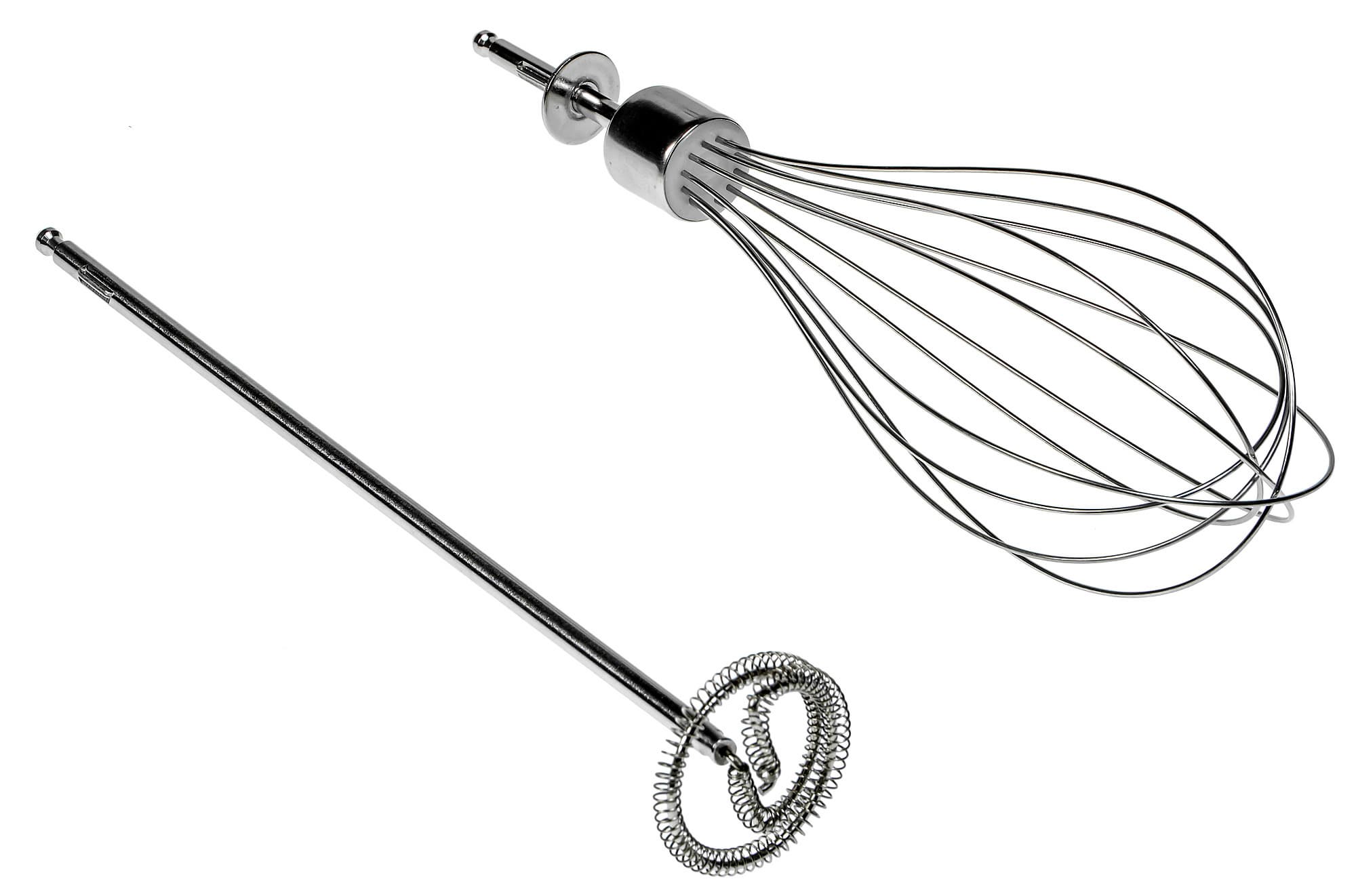 Венчик и насадка для вспенивания молока крепятся на блок через переходник. Вставляются в переходник и фиксируются нажатием.