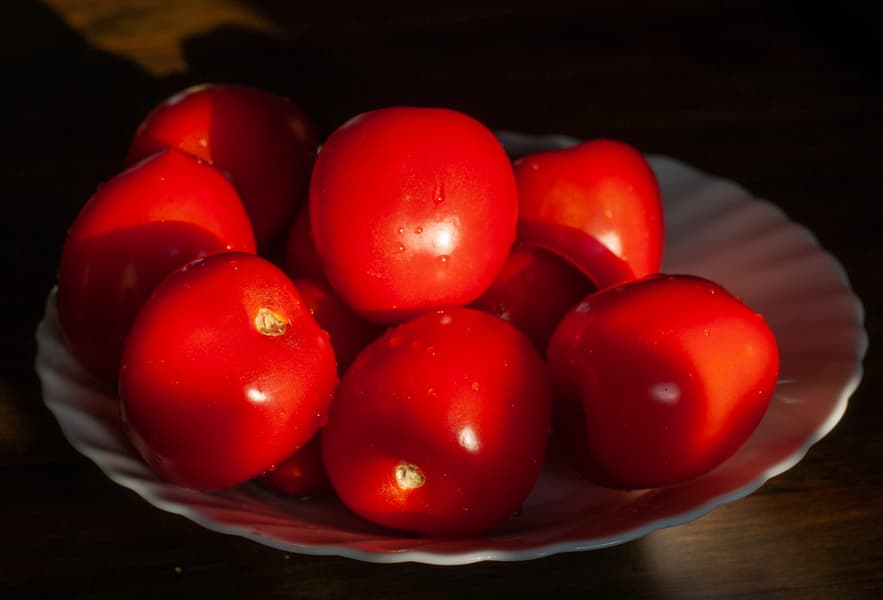 Мы взяли томаты сорта сливки, вымыли и разрезали пополам.