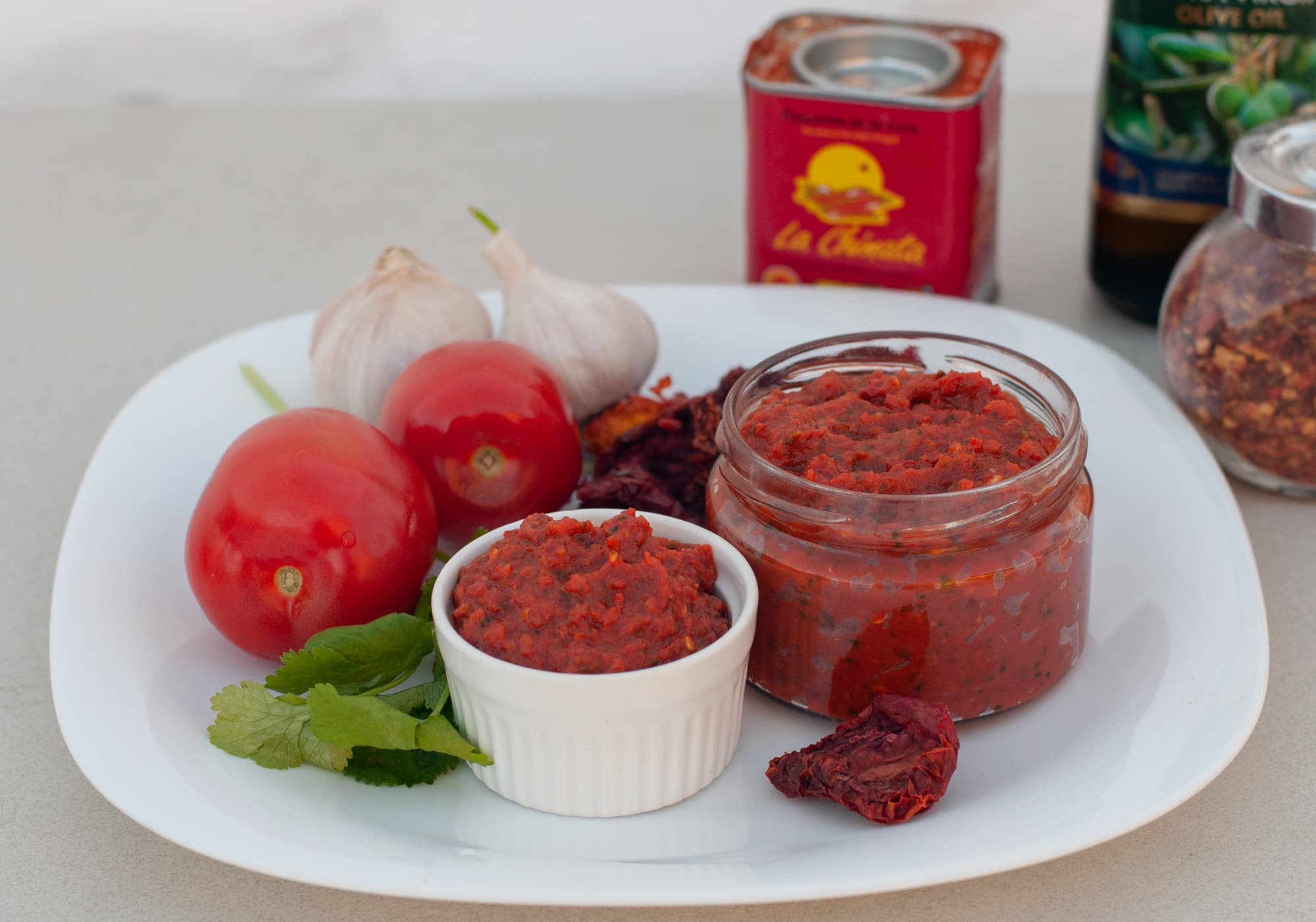 На этом этапе мы загрузили в наше томатное пюре вяленые помидоры, кинзу, копченый острый перец порошком, а также дробленый острый перец, соль, чеснок и оливковое масло. Измельчали на высокой скорости 3 цикла по 30 секунд. В итоге получился прекрасный острый соус, густой, с насыщенным томатным вкусом и отличной текстурой.