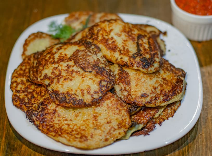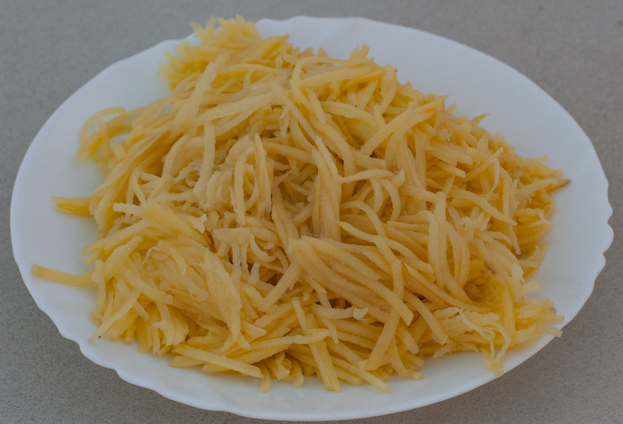 Крупно натертую жарили просто с солью, на манер немецкого «растрепанного картофеля».