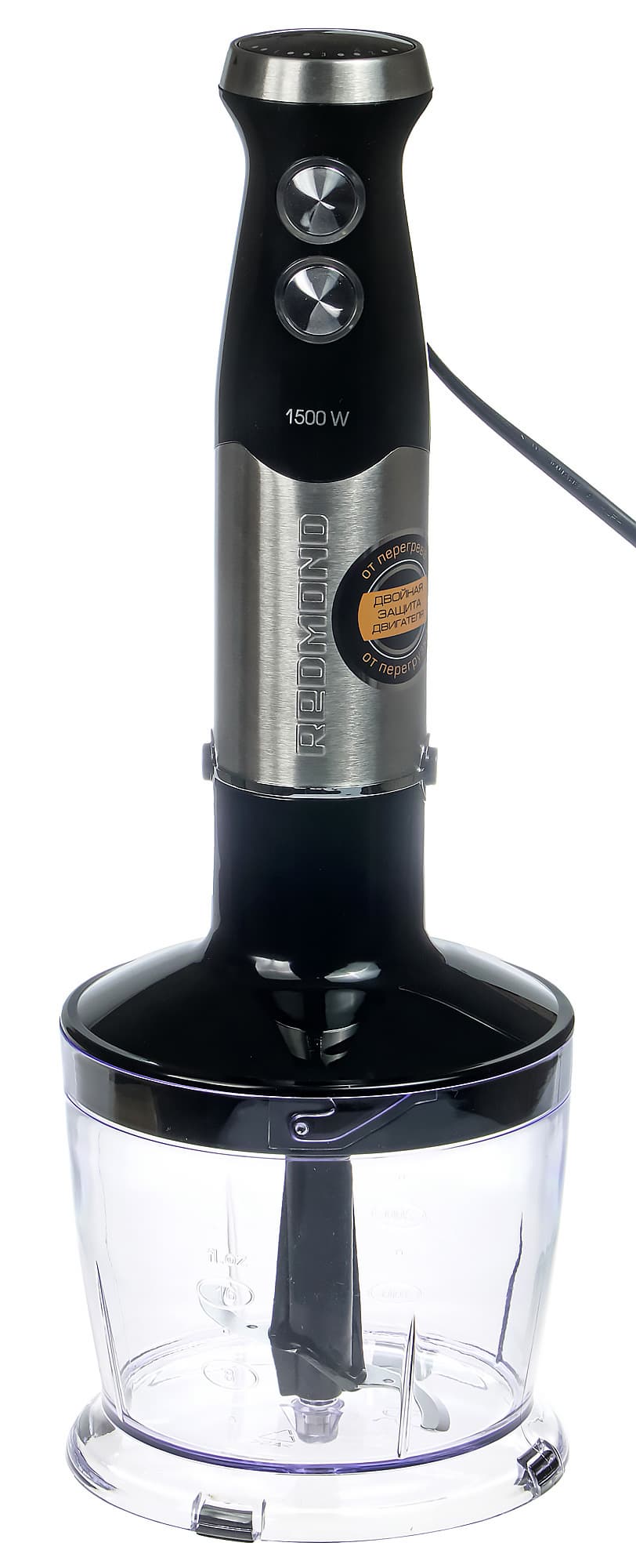 Redmond RHB-2964 — не просто блендер. Это многофункциональный кухонный комбайн, который может облегчить выполнение многих операций на кухне. Он может работать с очень маленькими объемами, что удобно для тех, кто обычно готовит только на себя или на двоих. При необходимости прибор может обрабатывать и большие объемы, но надо учитывать, что фиксатора кнопки включения нет, ее надо держать постоянно, могут устать пальцы.