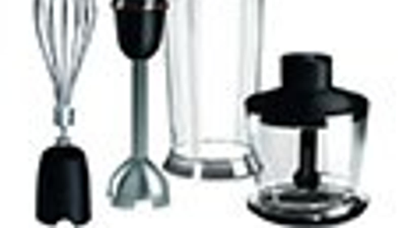 Прибор оказался приятным и простым в использовании: насадки снимаются и устанавливаются легко, крышка измельчителя закрывается простым поворотом, шум мотора не слышен за закрытой дверью кухни. К плюсам также отнесем оригинальный, но вместе с тем строгий дизайн изделия. Все насадки по меньшей мере удовлетворительно справились с поставленными задачами. Проблем с разбрызгиванием не возникло вообще, смешивание во всех случаях оказалось однородным, мощности было достаточно для всех тестовых заданий. Прибор оснащен турбо-режимом, также пользователь имеет возможность плавно регулировать мощность блендера в процессе работы. Можно отметить отличную работу измельчителя с S-образным ножом. Он равномерно измельчает мясо, орехи и другие продукты. Материал стакана для взбивания устойчив к царапинам и сохраняет свой первоначальный внешний вид.