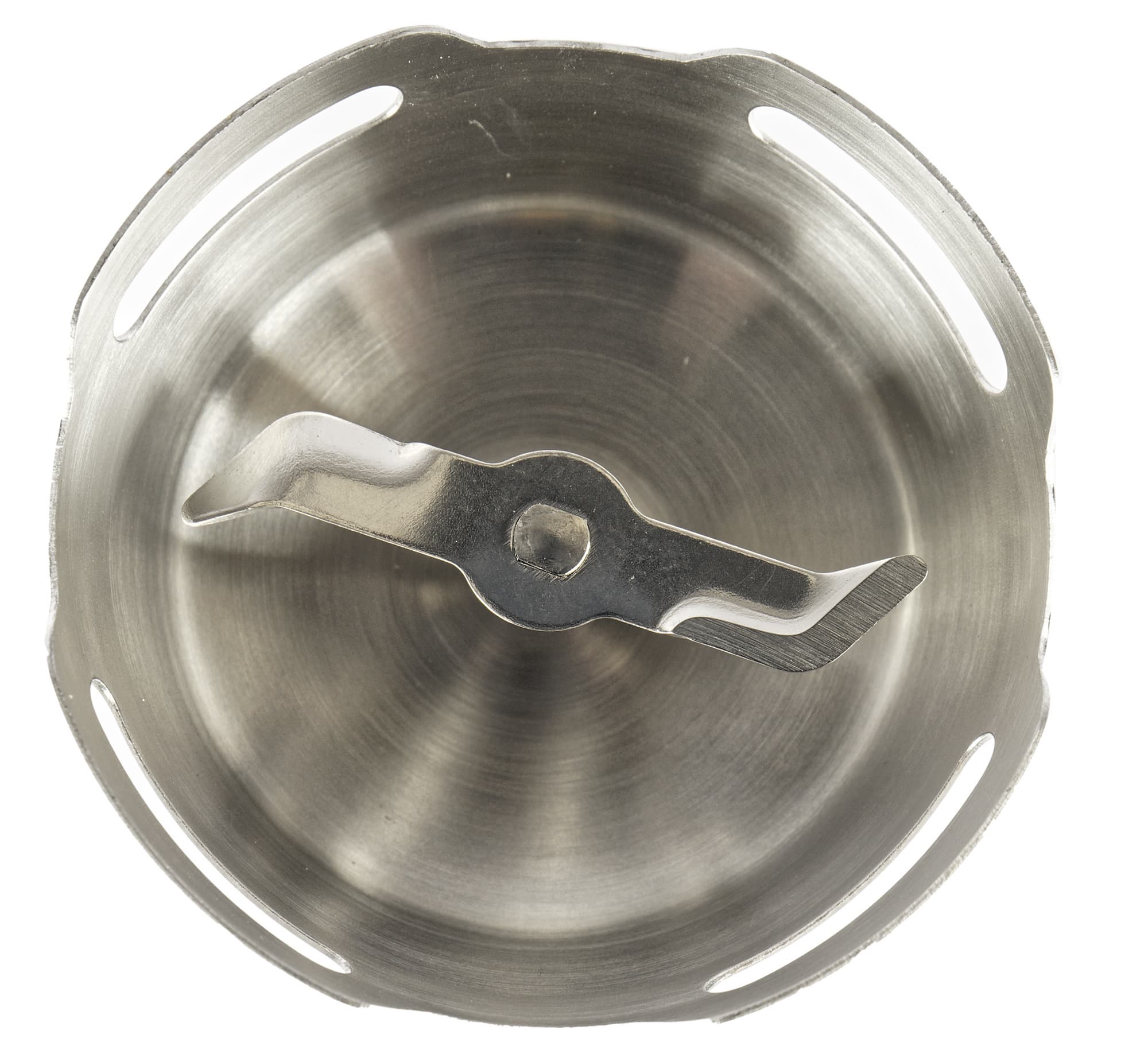 Довольно простой на вид двухлопастной нож из нержавеющей стали прячется под колпаком сложной формы, имеющим четыре прорези (видимо, они должны способствовать перемешиванию продуктов). Лопасти ножа симметричны и заточены с одной из сторон.