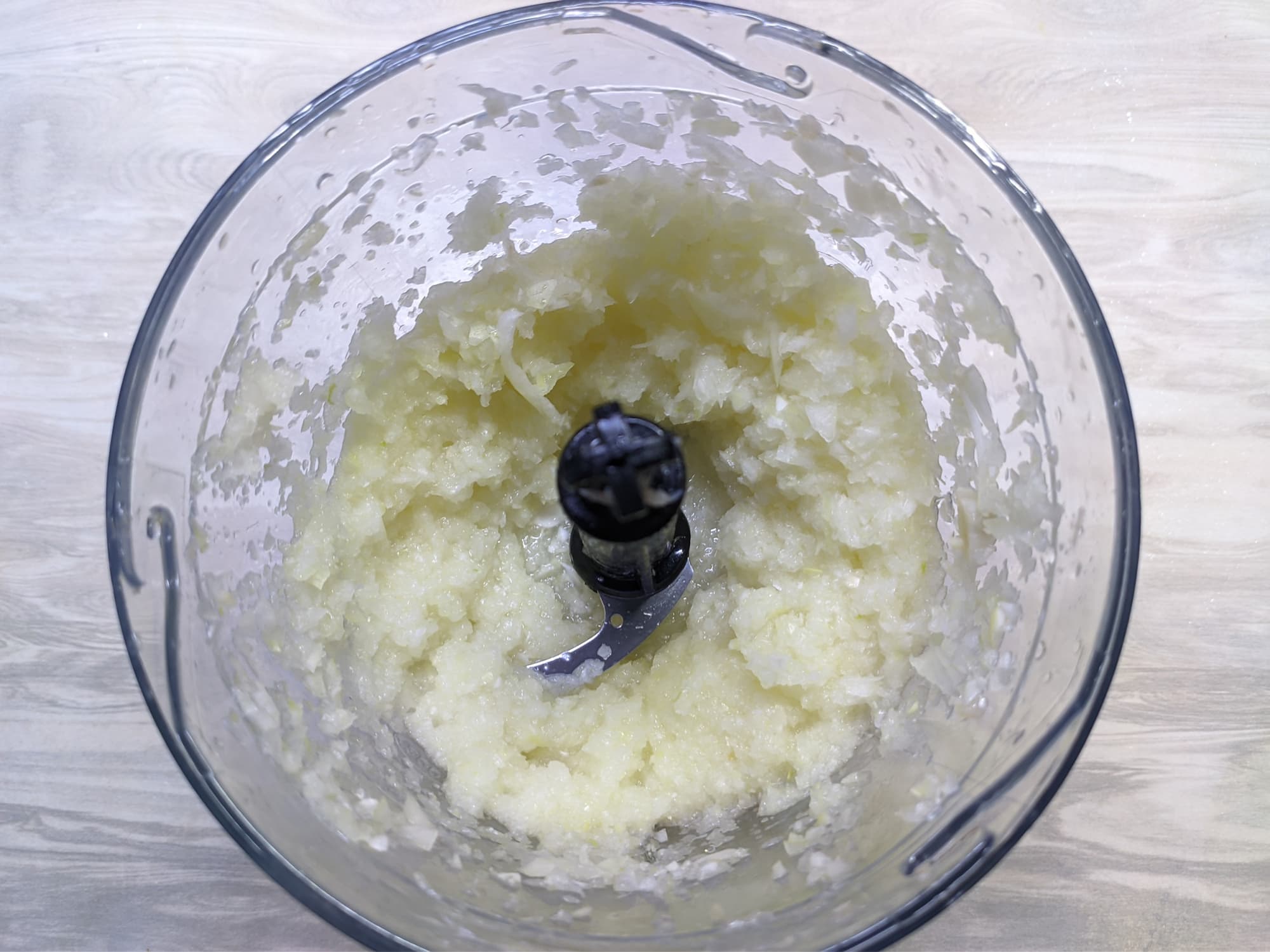 Наконец, разберемся с чашей для измельчения. Приготовим котлетки из курицы. Для этого последовательно измельчим в чаше лук.