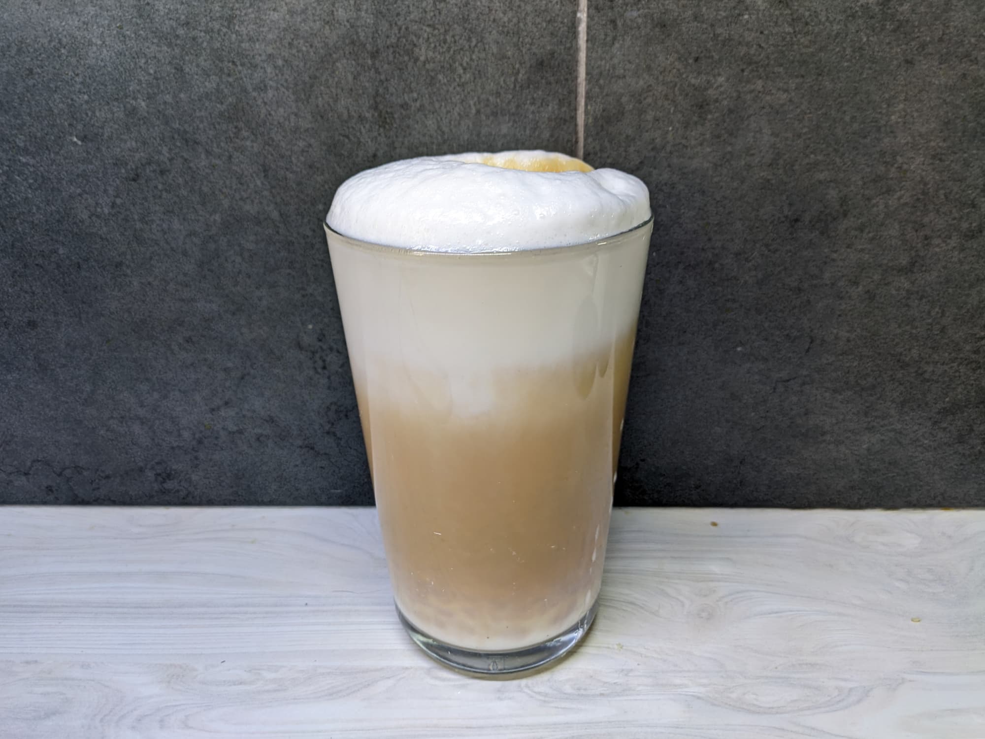 Пена получилась что надо: густая, пышная, без крупных пузырьков.