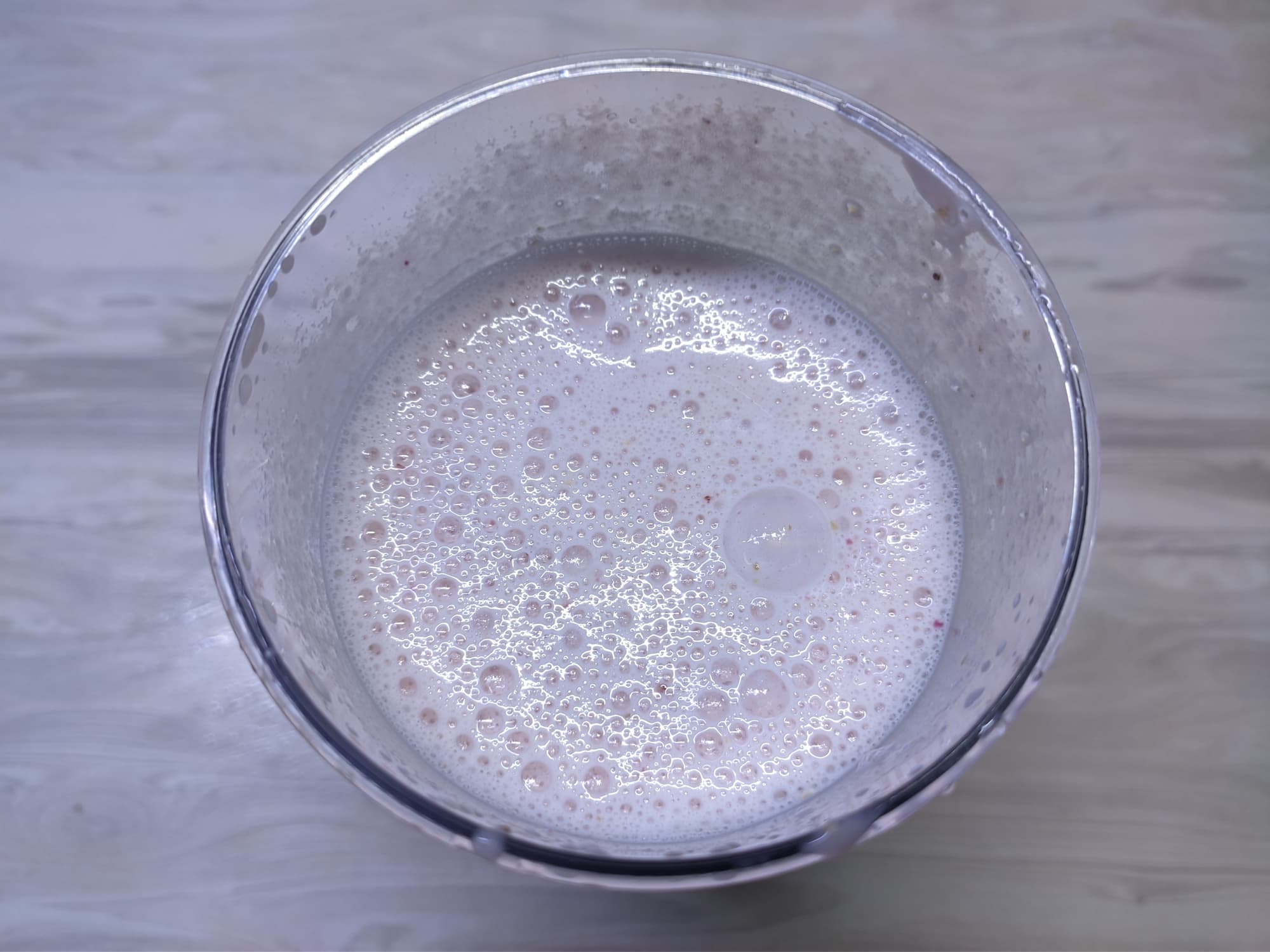 Содержимое стакана превратилось в густую однородную субстанцию, насыщенную пузырьками воздуха.