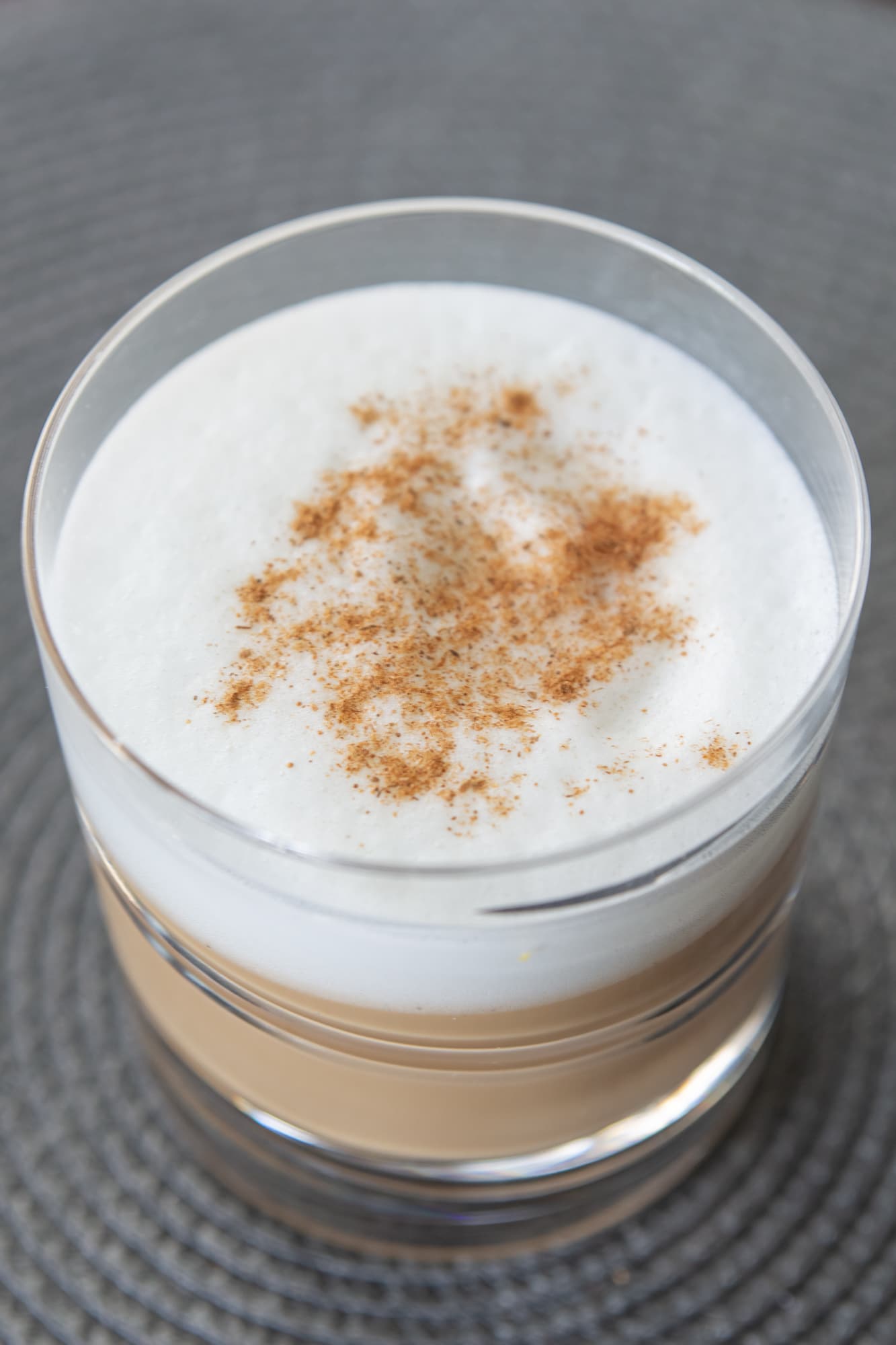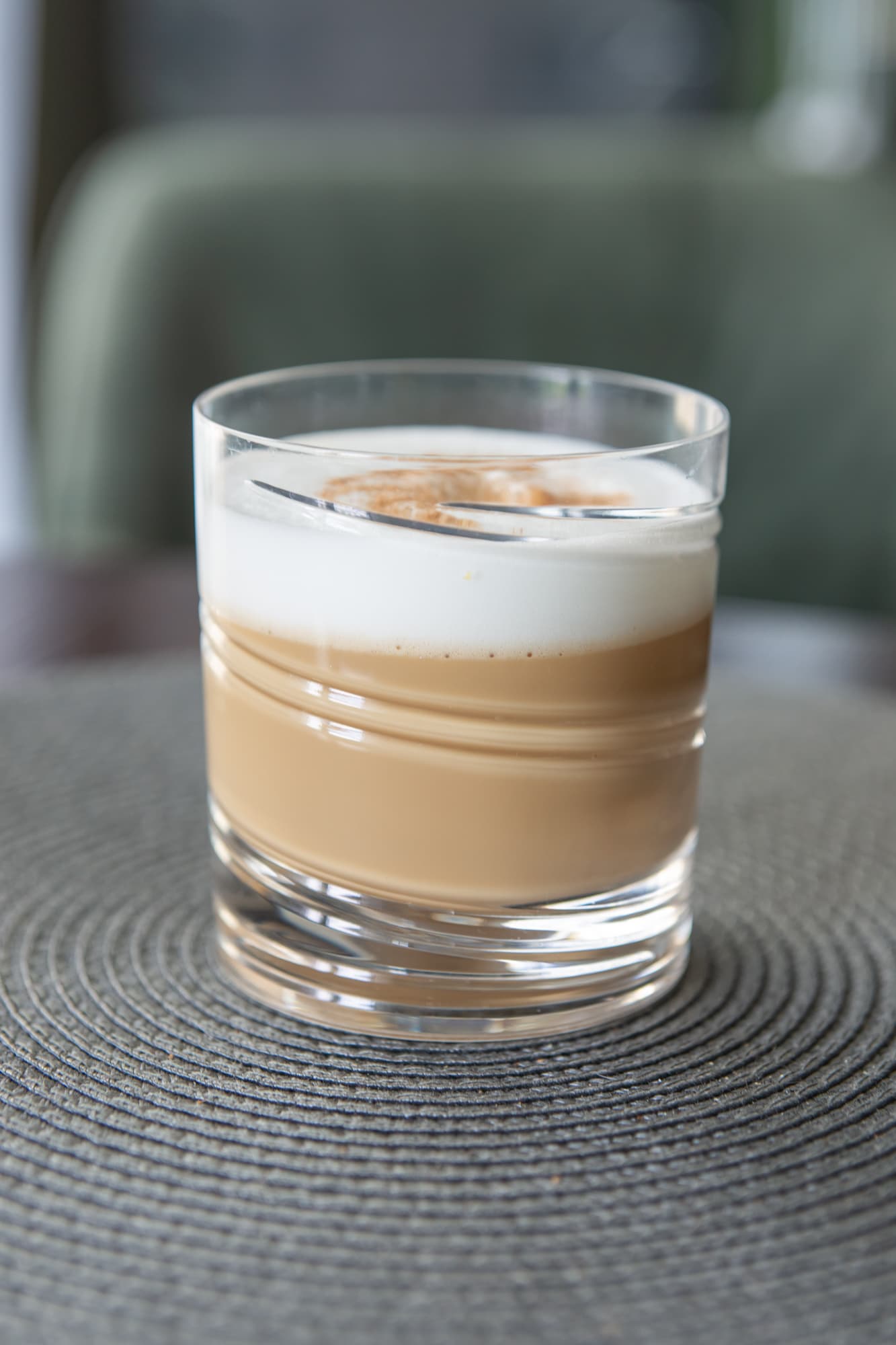Добавили к ней эспрессо и присыпали корицей. Пенка получилась устойчивой, она практически не уменьшилась в объеме до момента полного остывания кофе.