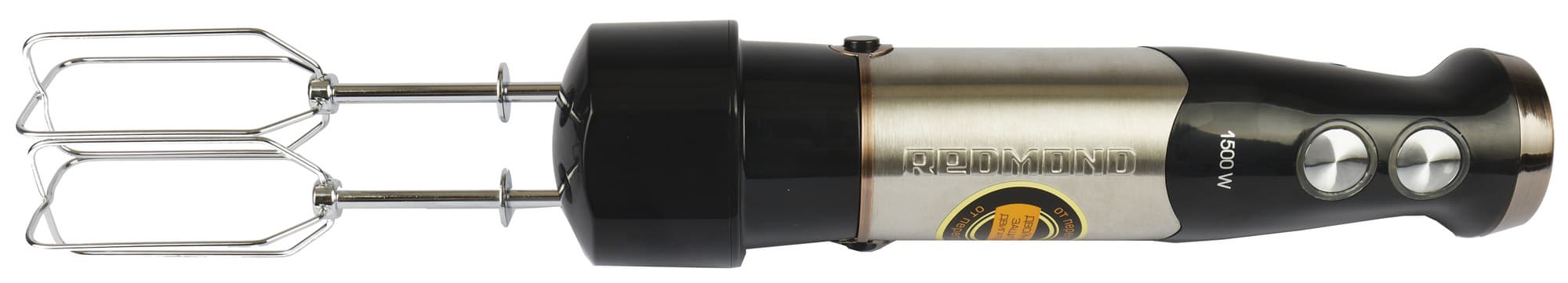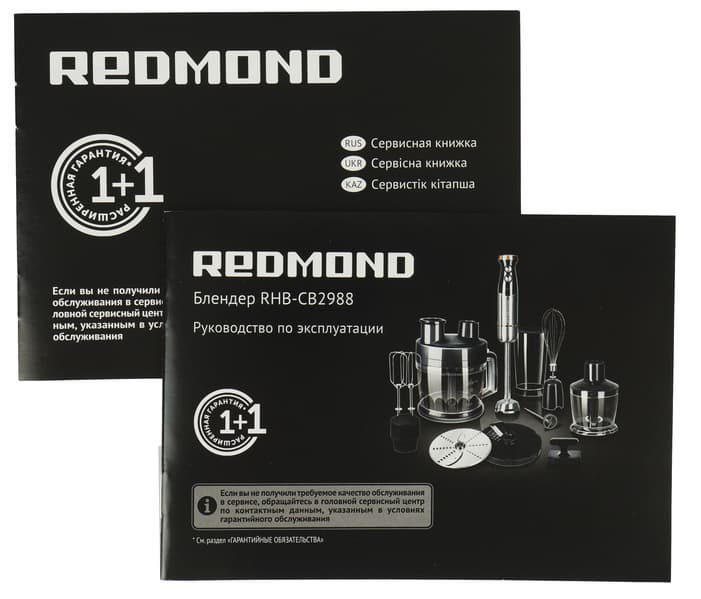 Одной из особенностей Redmond RHB-CB2988 является наличие насадки с двумя венчиками, превращающими блендер в миксер. Для взбивания на моторный блок устанавливается специальный пластиковый переходник с двумя гнездами, в котором фиксируются металлические венчики традиционной для миксеров формы.