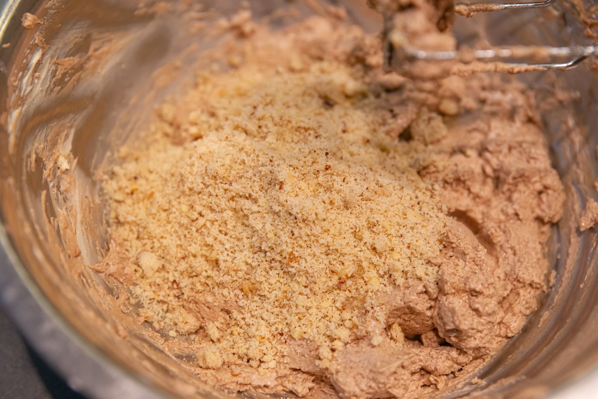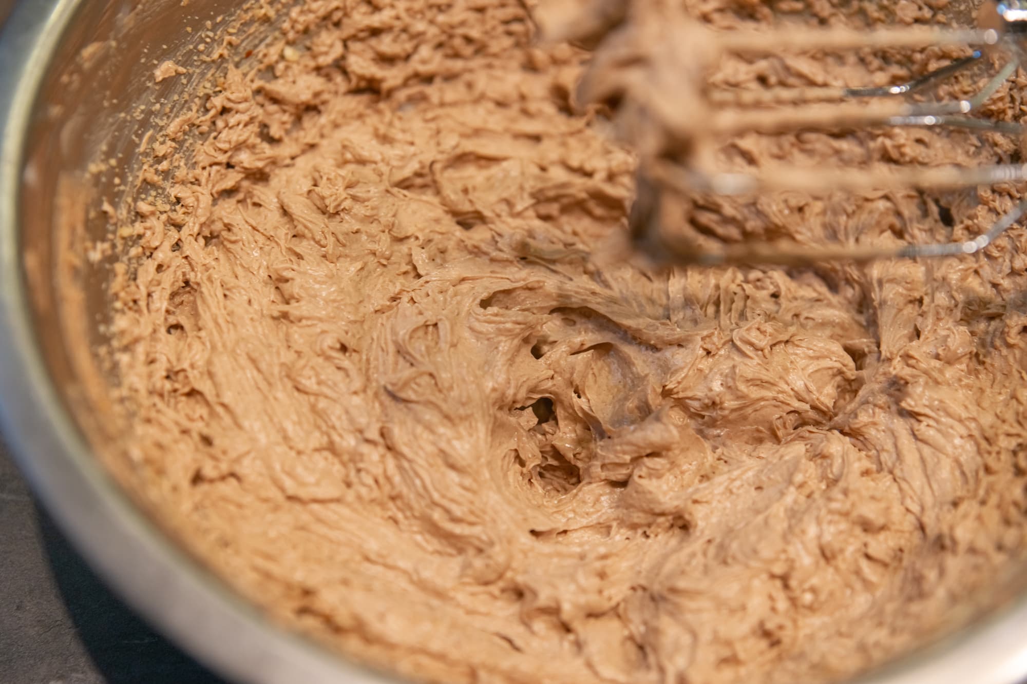 За пределы емкости ничего не вылетало, крем получился достаточно воздушным, отлично держал форму и на вкус вышел идеальным — не приторным, с приятными шоколадно-ореховыми нотками.