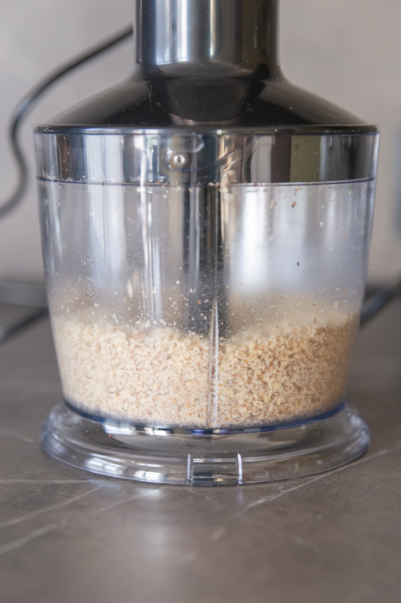 100 граммов грецких орехов стали равномерно измельченной крошкой всего за 10 секунд. Блендер работал на 3-й скорости в обычном режиме.