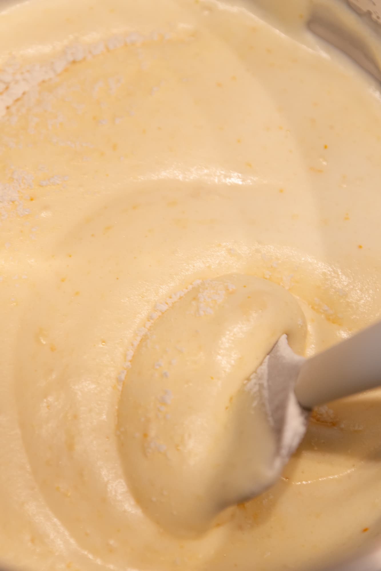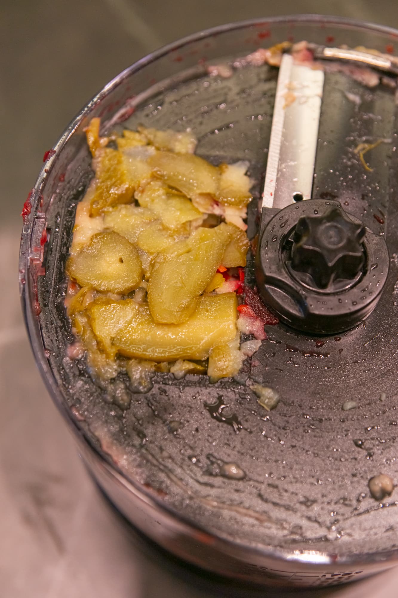 Увеличили скорость до 3-й и прокрутили массу в течение еще 1,5 минут. Дополнительное время позволило уменьшить количество и размер шкурок, но сильно ситуацию не изменило.