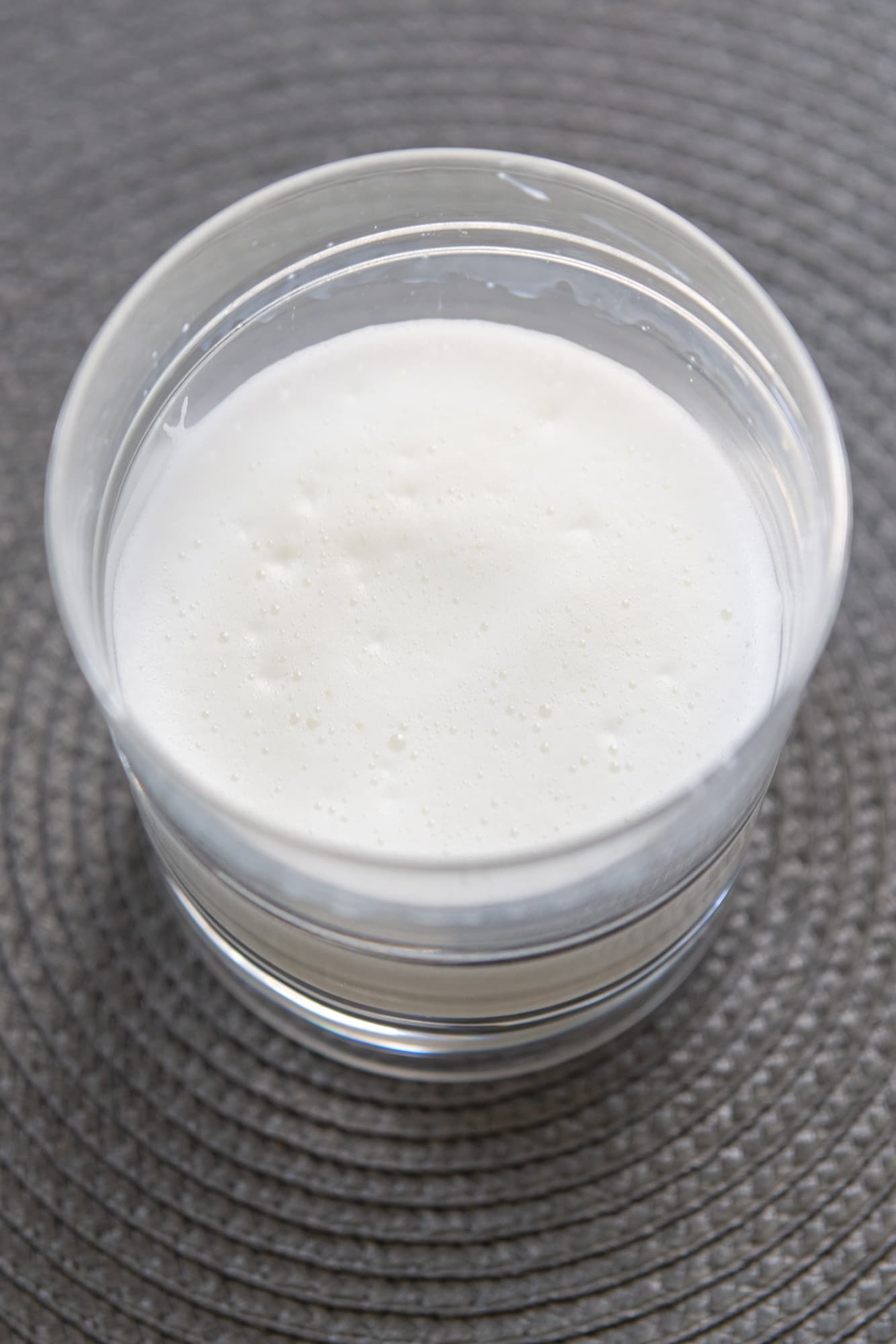 На очереди насадка-капучинатор. Подогрели молоко, опустили в стакан капучинатор и взбили жидкость до густой пышной пены.