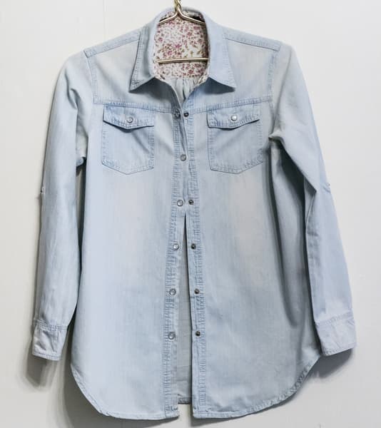Этот предмет одежды долго хранился в шкафу в мятом виде. Ткань сама по себе не слишком простая, а уж разгладить рубашку после такого хранения — задача не самая тривиальная.