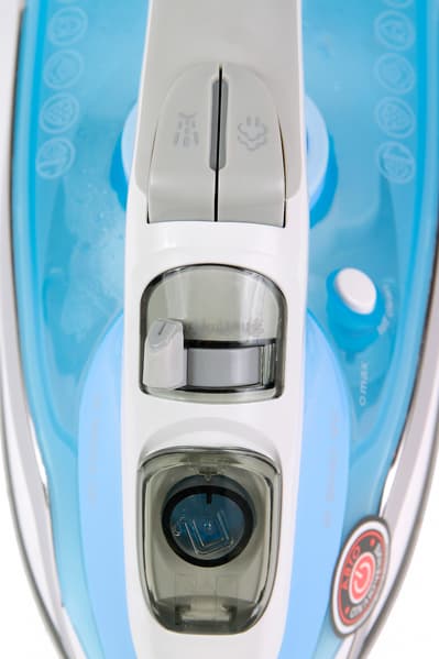 Начать взаимодействие с утюгом следует с установки подходящего температурного режима и способа глажения (с паром или без, с какой интенсивностью подачи пара). Элементы управления этими функциями находятся в привычных местах. Регулятор температурных режимов вращается свободно, с характерными щелчками, пошаговости не ощущается.