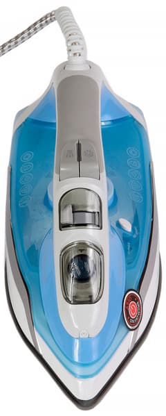 Внешне утюг выглядит совершенно обычно: корпус с подошвой для глажения и ручкой. В оформлении использованы светлые тона, что визуально «облегчает» прибор. Вес утюга можно признать средним — он не очень тяжел, но и легким его тоже не назвать. Поверхность ручки снаружи имеет прорезиненную вставку. Благодаря этому утюг без скольжения располагается в ладони. В нижней части ручки, в месте ее соединения с корпусом, с внутренней стороны расположен световой индикатор. Индикатор представляет собой узкую полосу голубого пластика более темного, чем у основного цвета корпуса, оттенка.